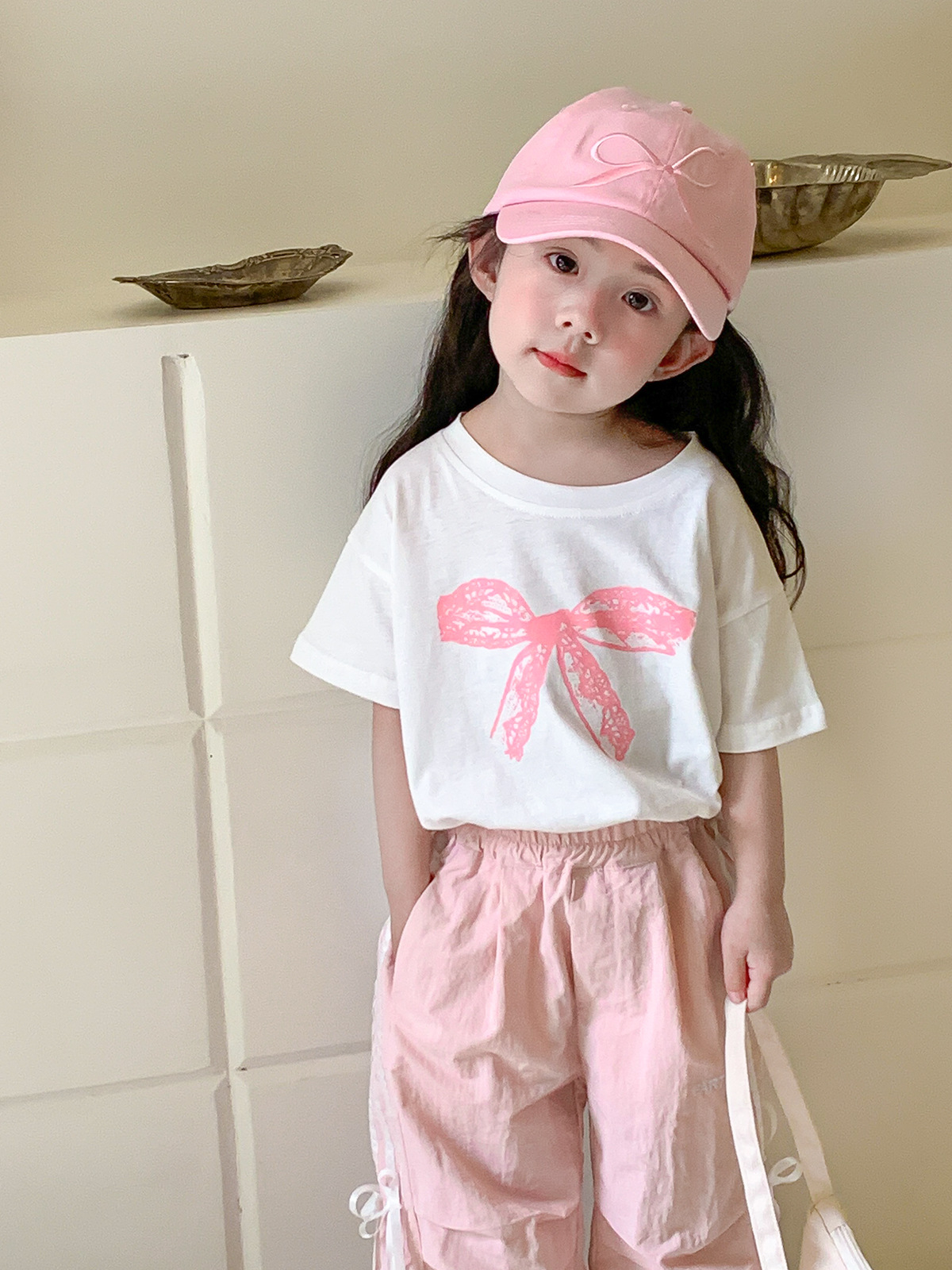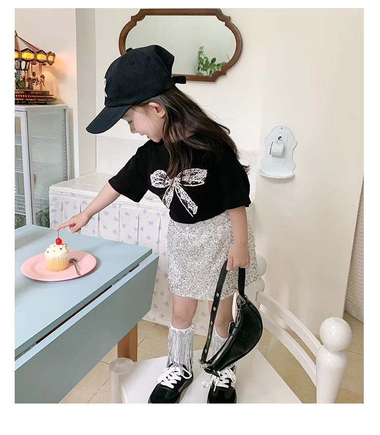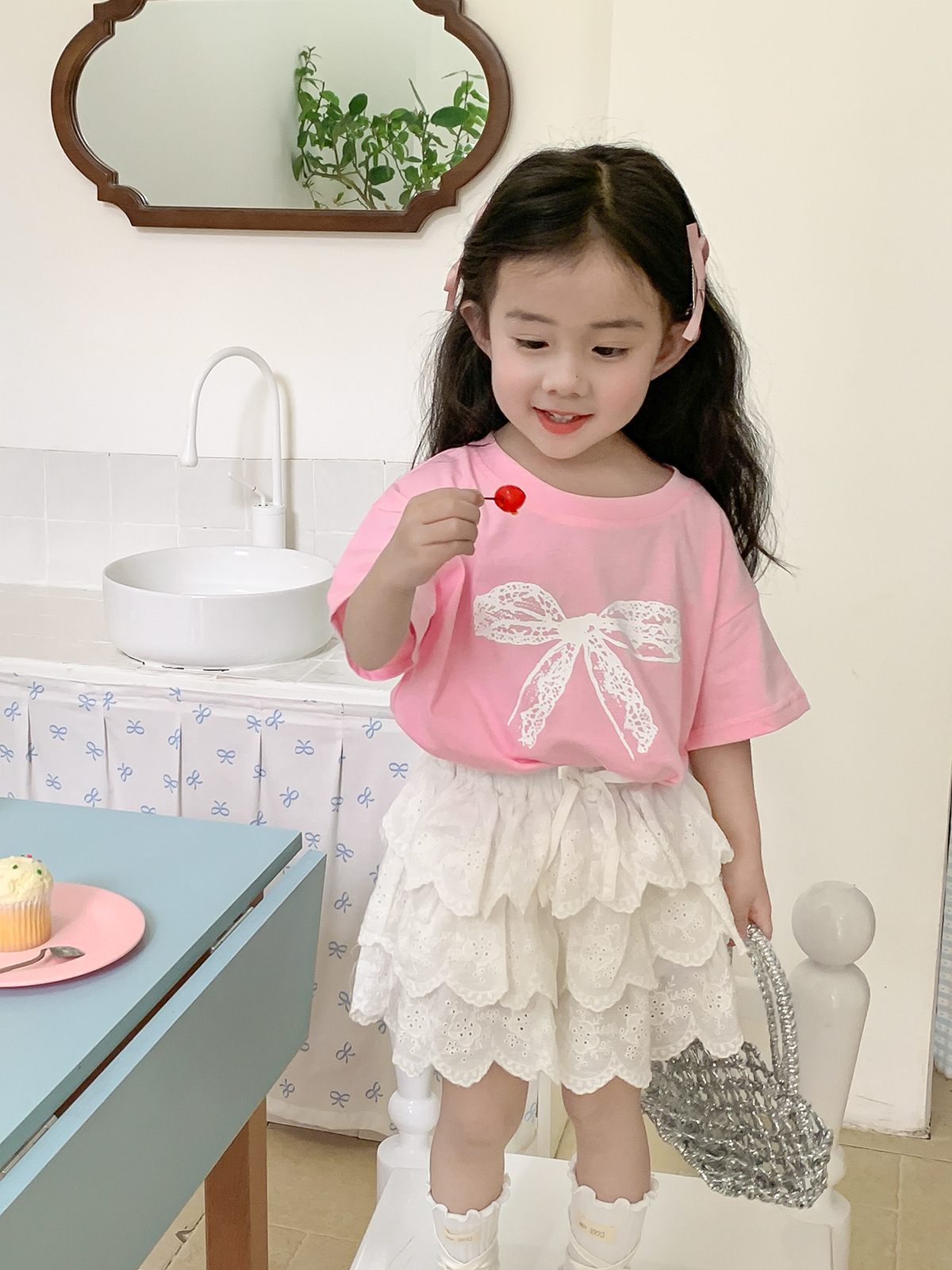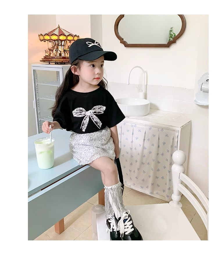 여자 반소매 티셔츠 여름 2024 년 새 어린이 한국식 레이스 활 반소매 여성 여름 탑스토어 가기