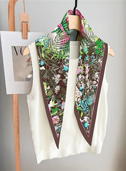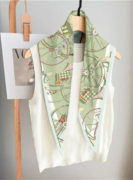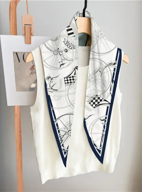 한국 빈티지 체인 세련된 작은 다이아몬드 얇은 실크 스카프 여성을위한 봄 가을 올 매치 장식 스튜어디스 스카프 목도리 스카프