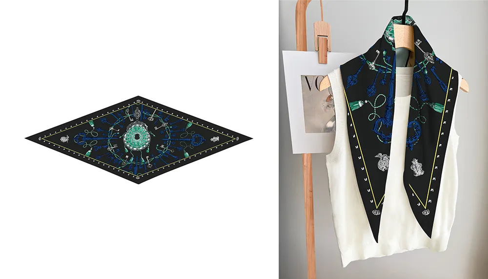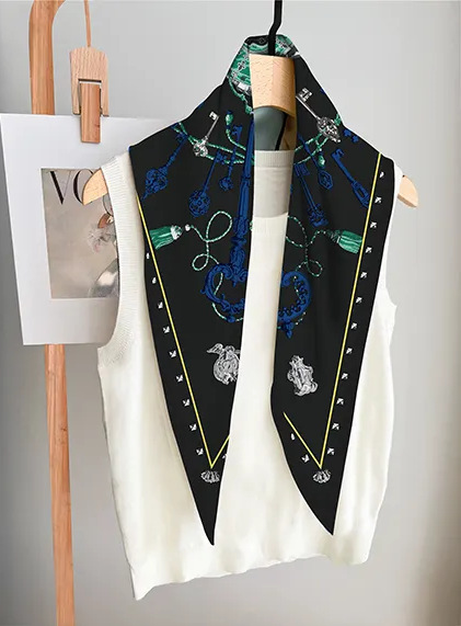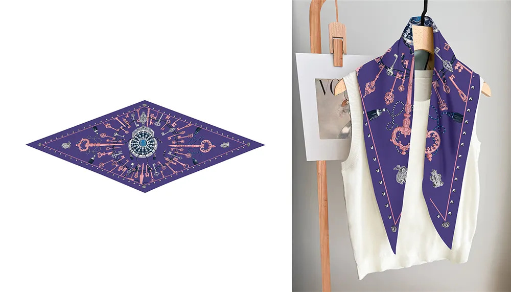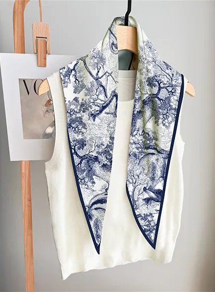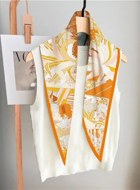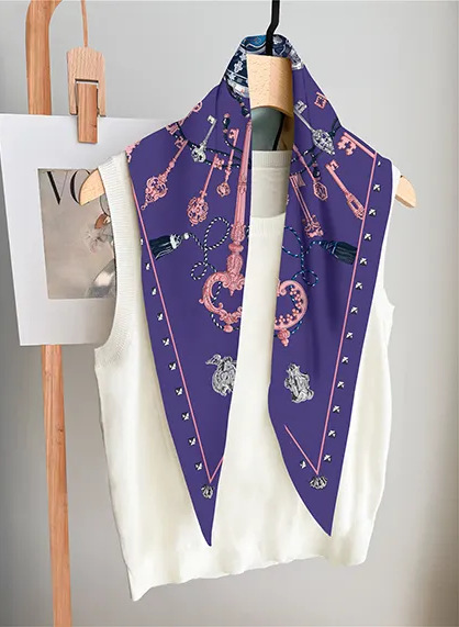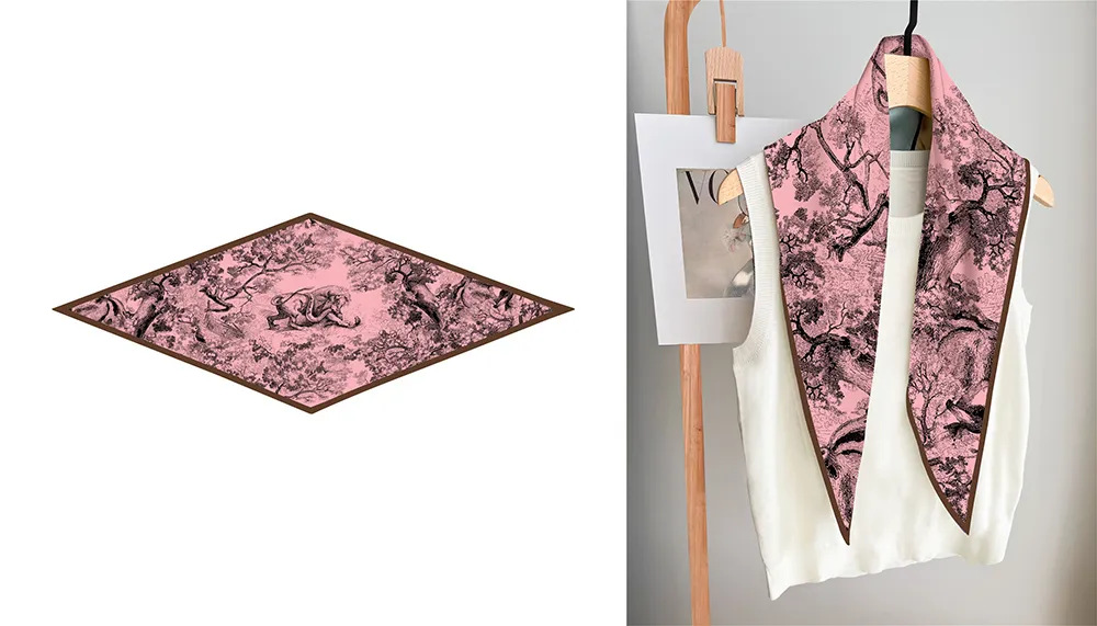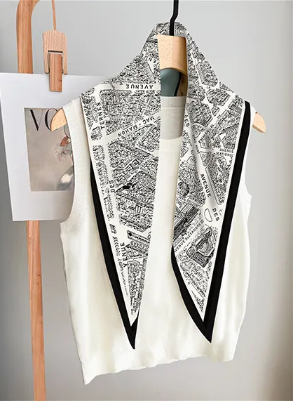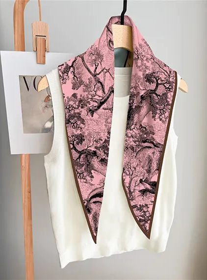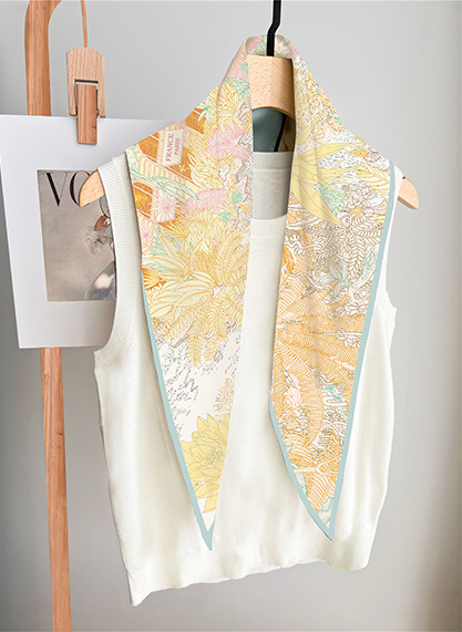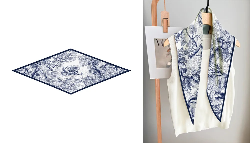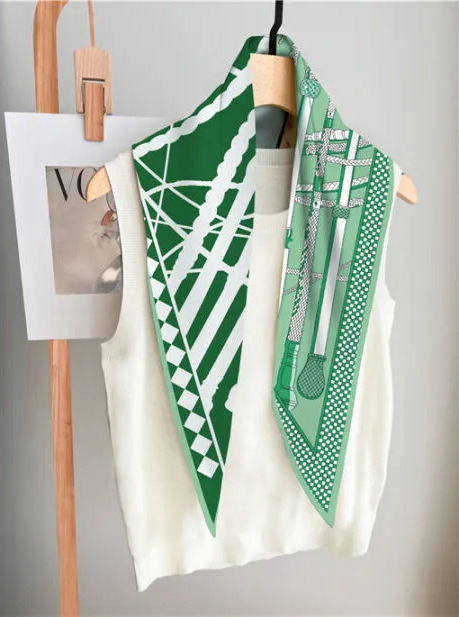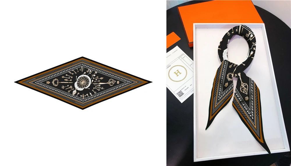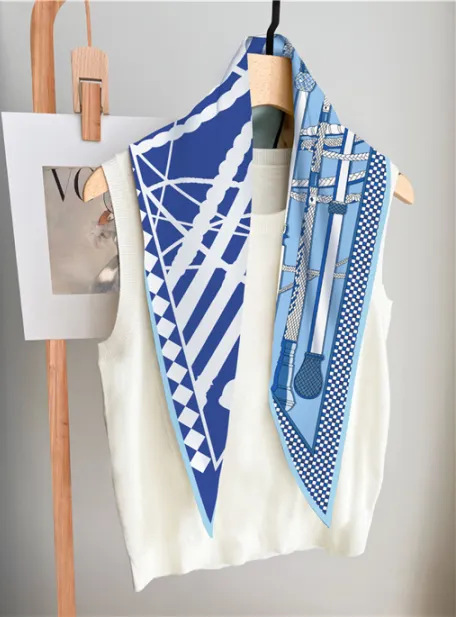 한국 빈티지 체인 세련된 작은 다이아몬드 얇은 실크 스카프 여성을위한 봄 가을 올 매치 장식 스튜어디스 스카프 목도리 스카프스토어 가기