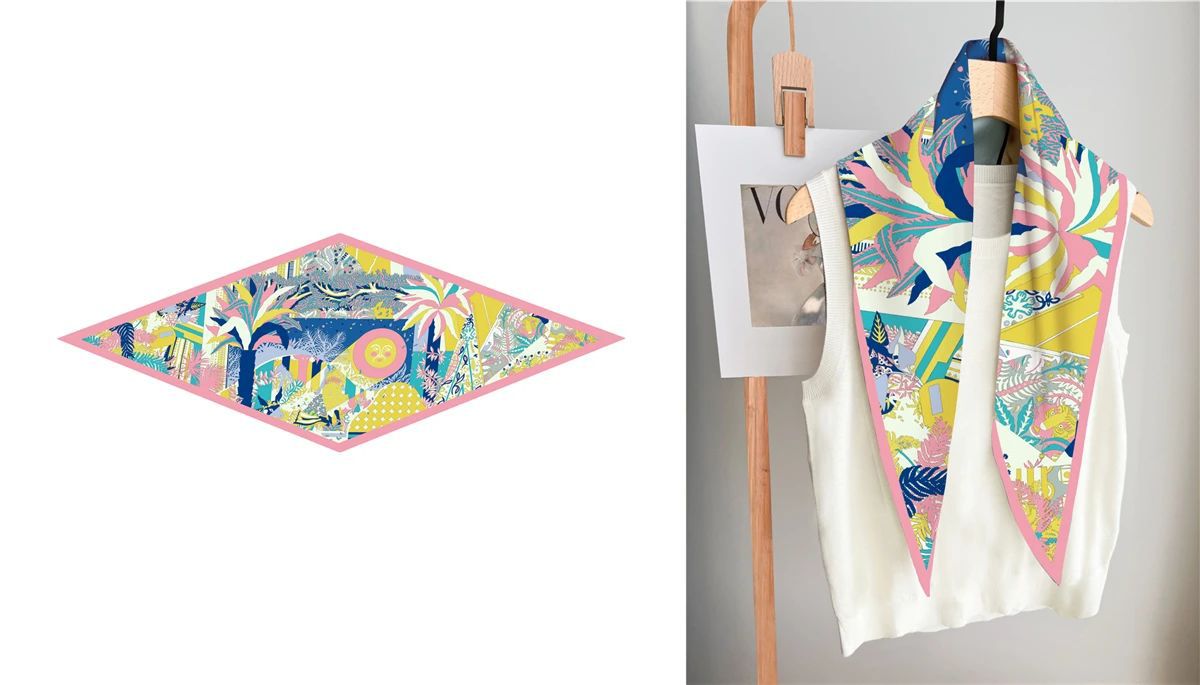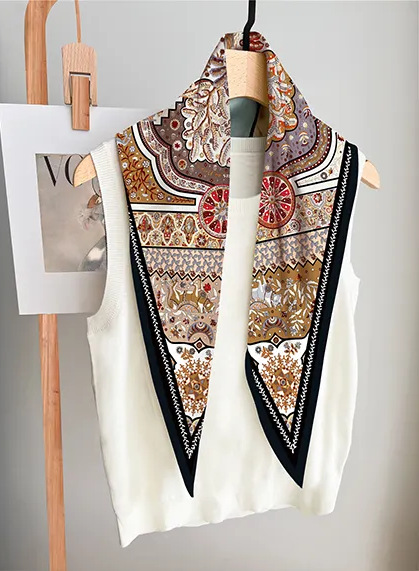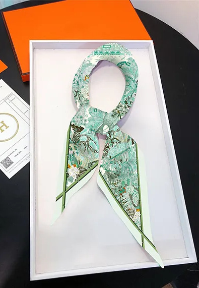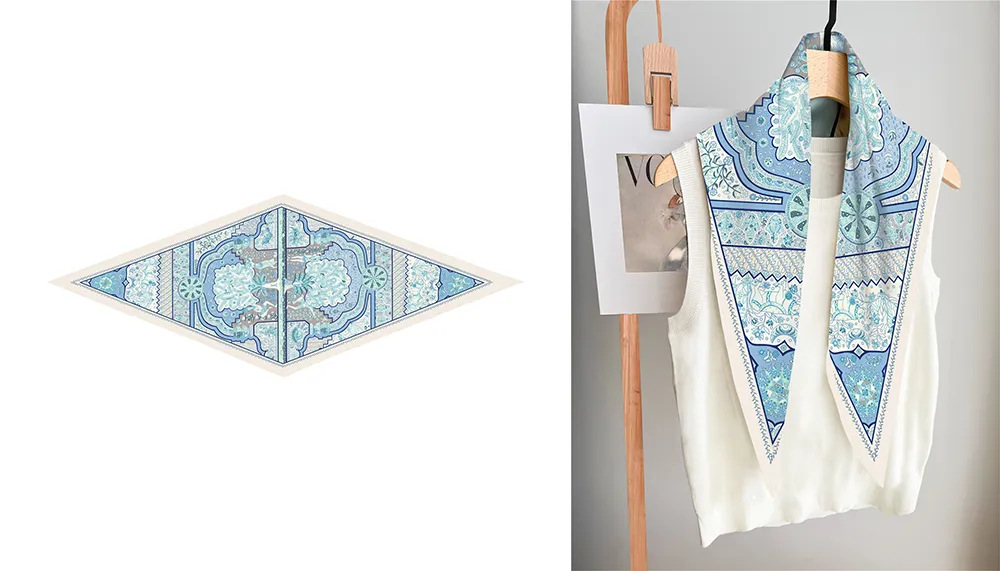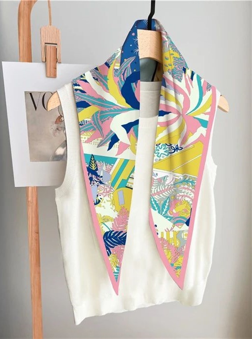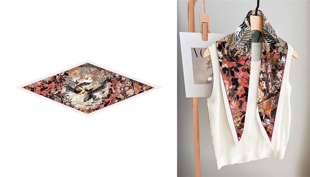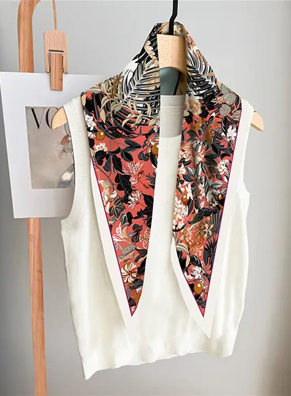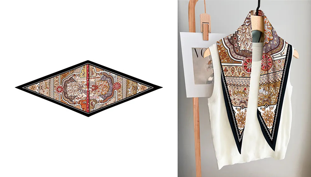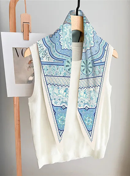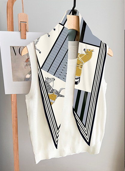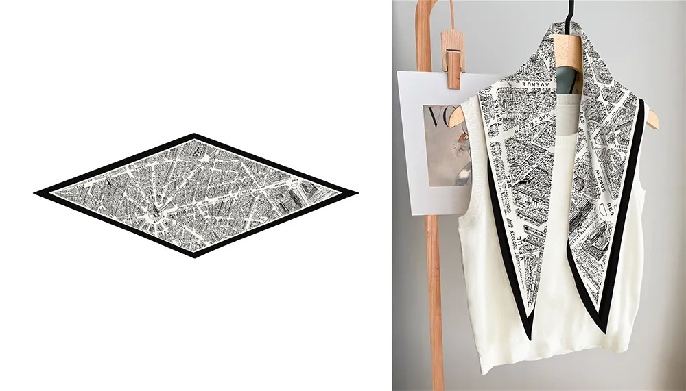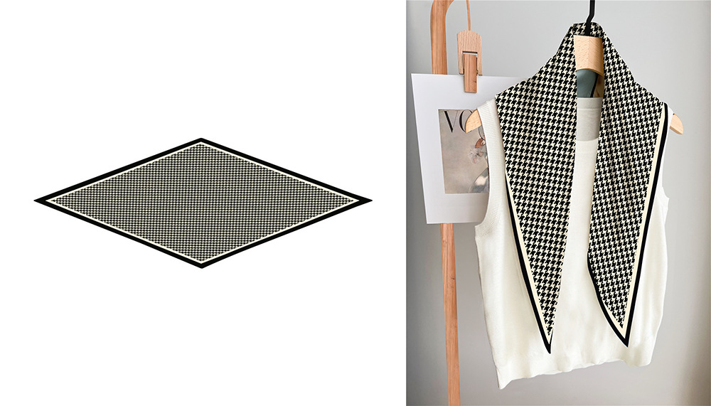 한국 빈티지 체인 세련된 작은 다이아몬드 얇은 실크 스카프 여성을위한 봄 가을 올 매치 장식 스튜어디스 스카프 목도리 스카프스토어 가기