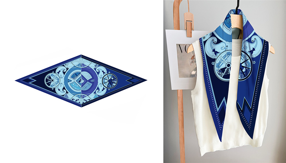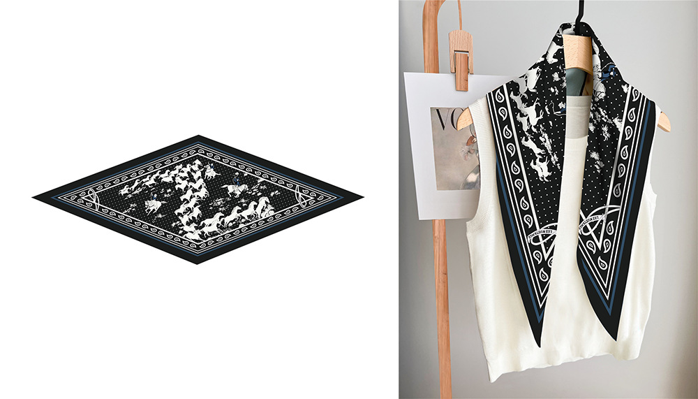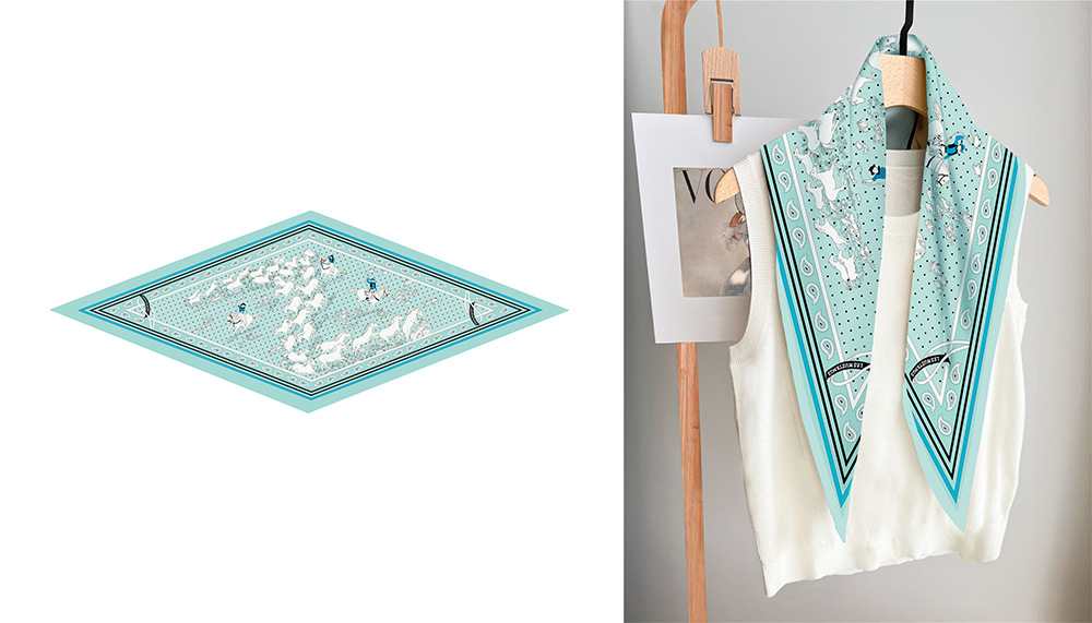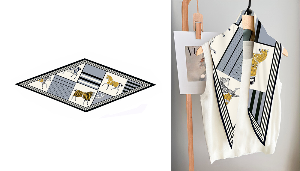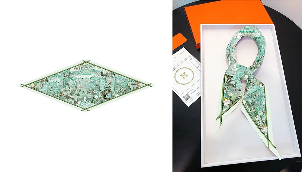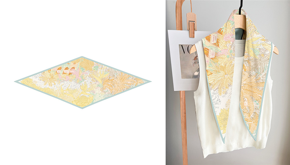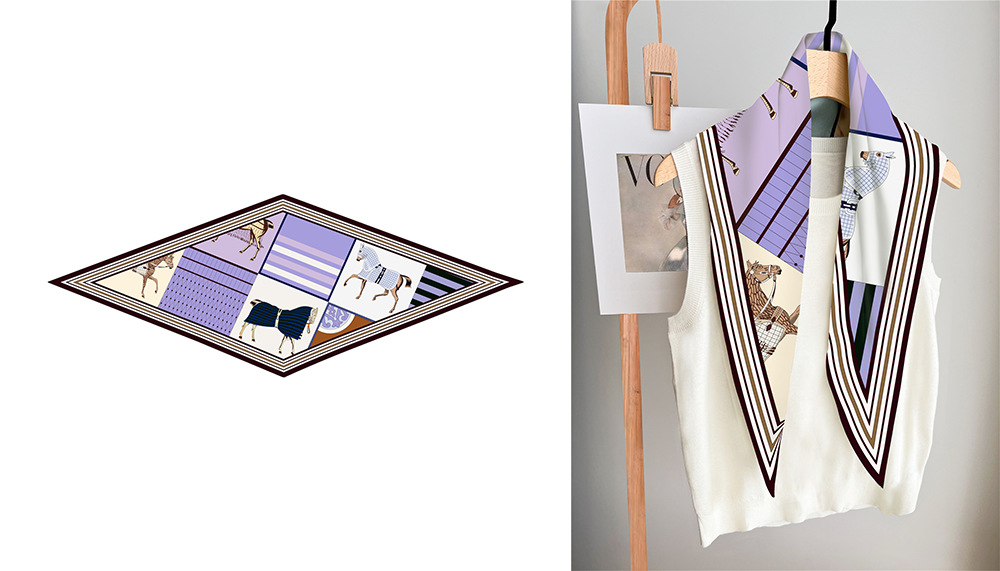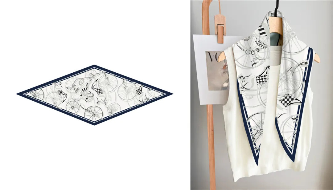 한국 빈티지 체인 세련된 작은 다이아몬드 얇은 실크 스카프 여성을위한 봄 가을 올 매치 장식 스튜어디스 스카프 목도리 스카프스토어 가기