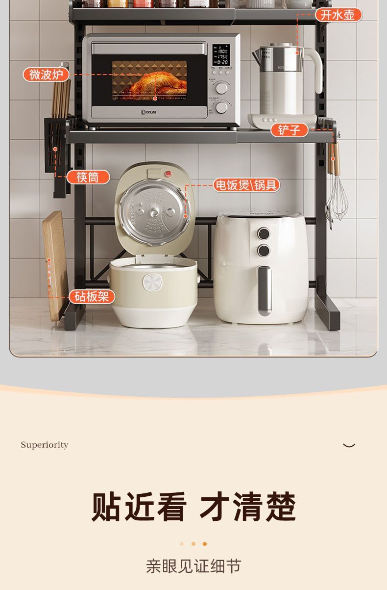 조정 가능한 주방 전자 레인지 저장 랙 다기능 오븐 공기 프라이어 밥솥 양념 인터넷 기념 스토리지 랙