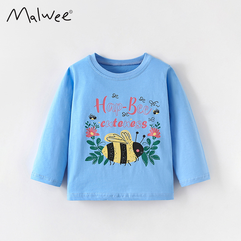 Malwee 어린이 긴 소매 가을 새로운 유럽과 미국 어린이 티셔츠 가을 둥근 목 외국 스타일 프린트 탑스토어 가기