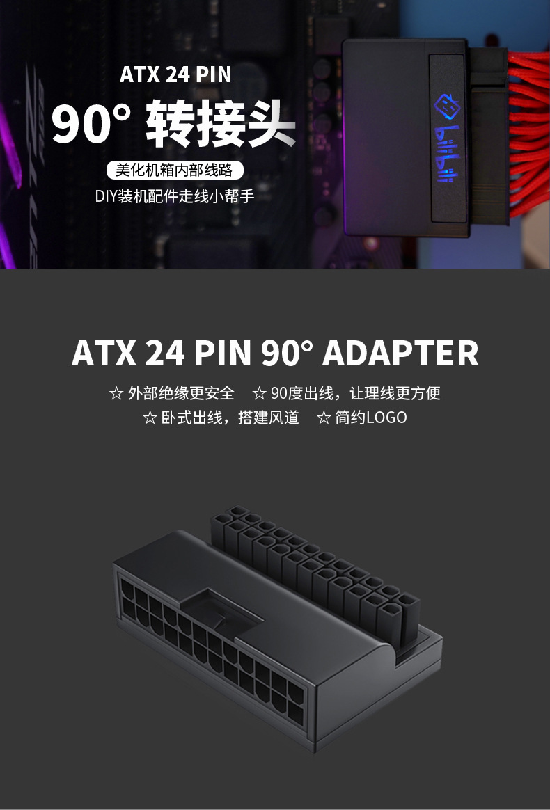 데스크톱 컴퓨터 ATX 24P 전원 어댑터 24P 스티어링 헤드 컴퓨터 마더 보드 24PIN 스티어링 발광 헤드
