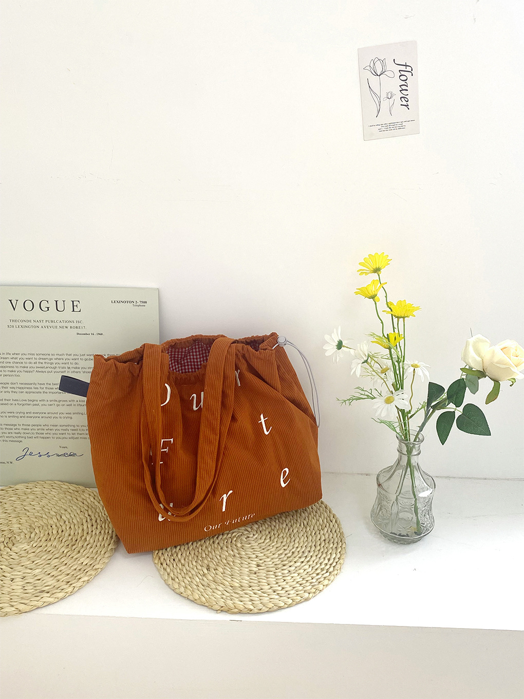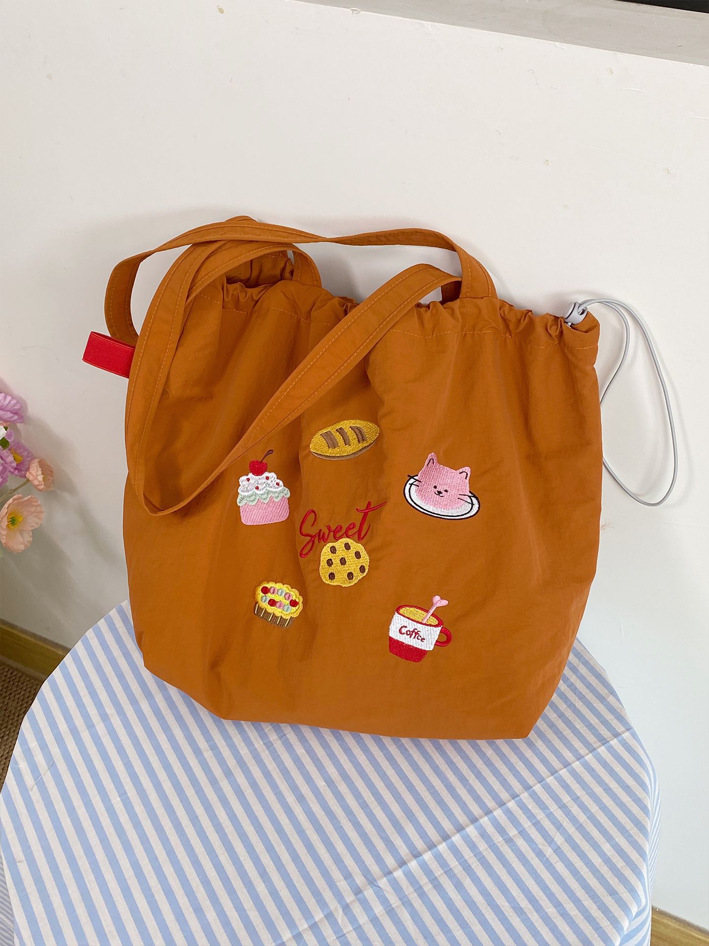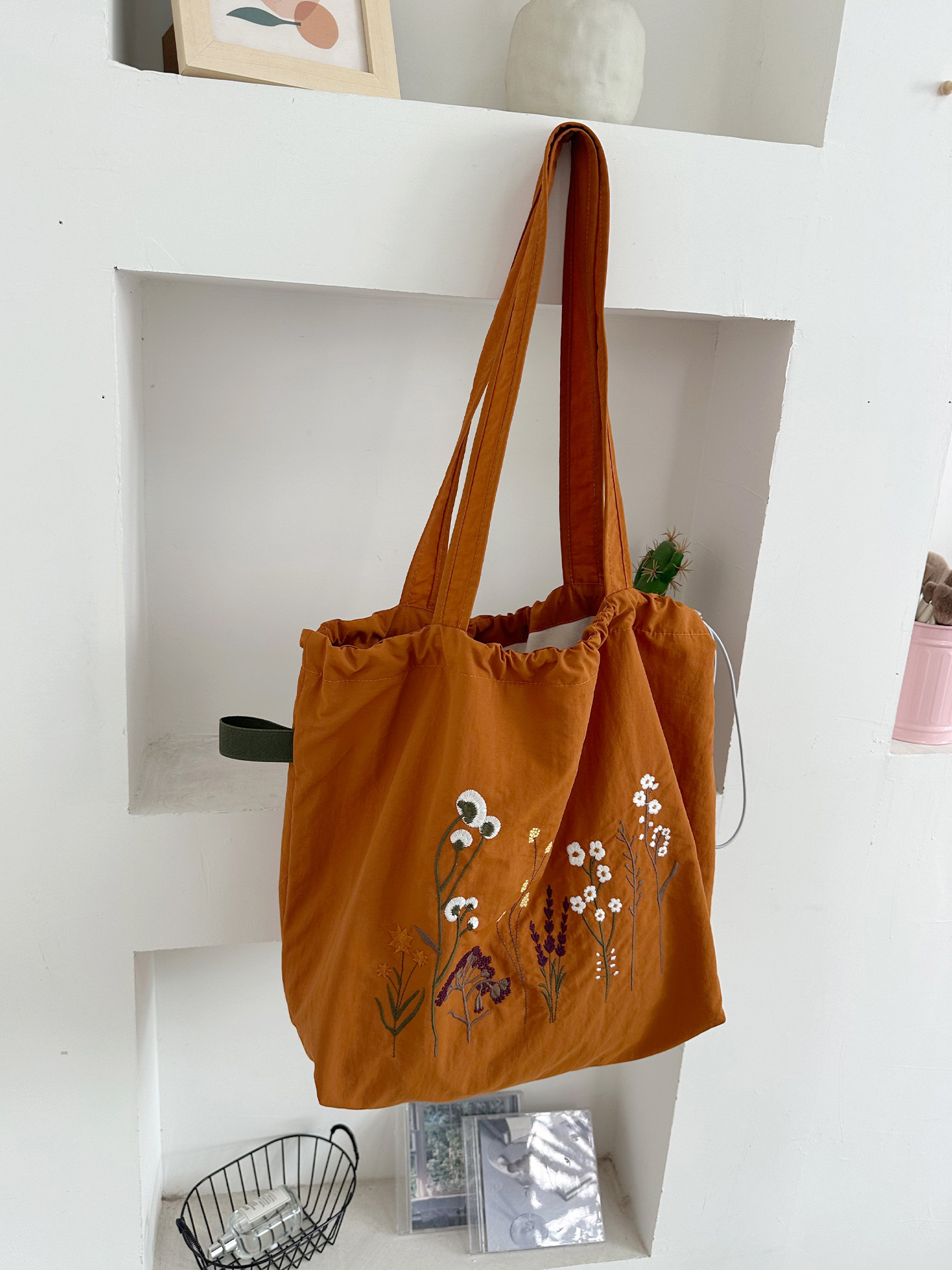 • 레트로 드라이플라워 나일론 더블 레이어 모델(두꺼운 안감) - 더티 오렌지