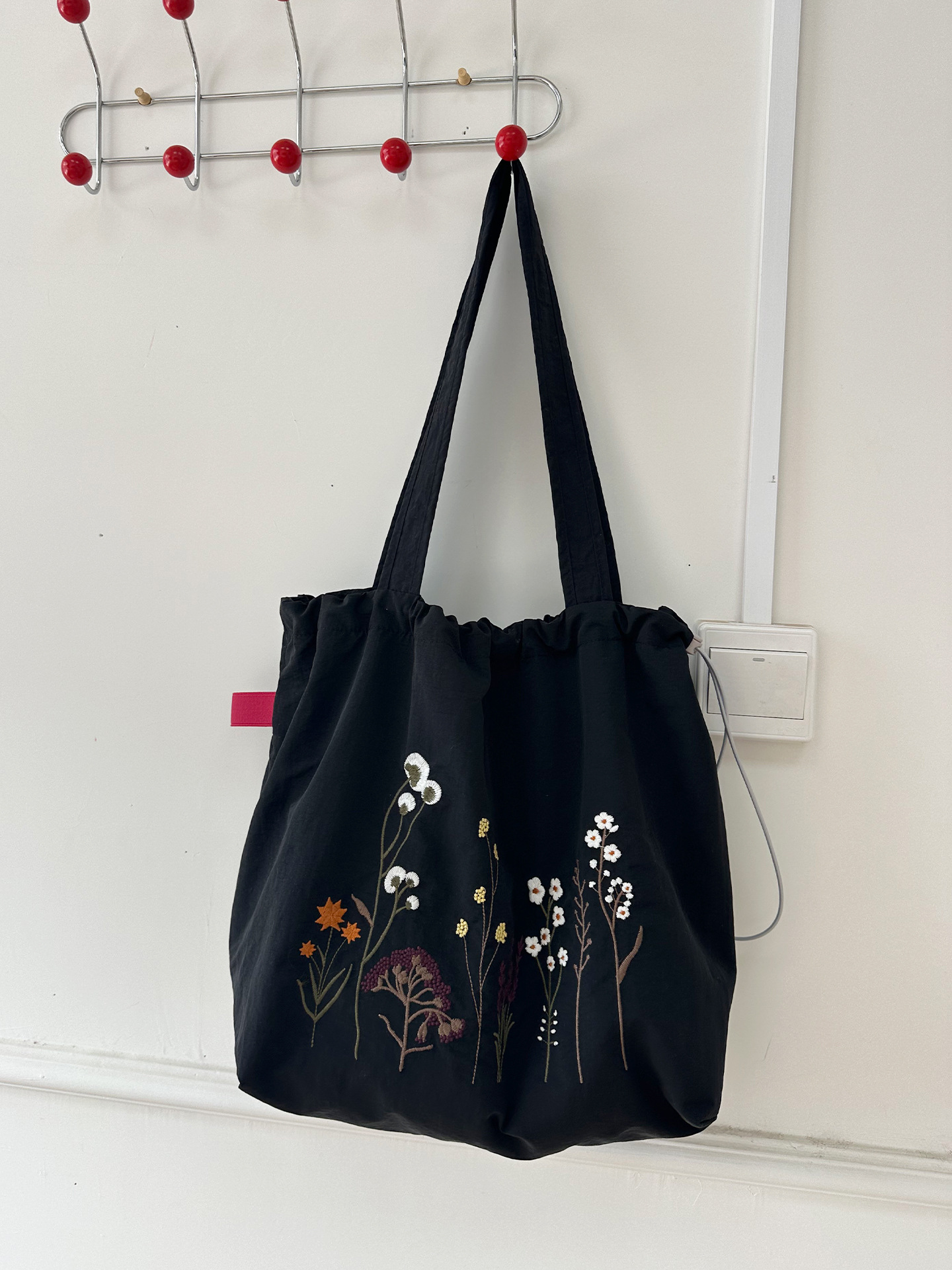 • 레트로 드라이플라워 나일론 더블 레이어 모델(두꺼운 안감) - 블랙