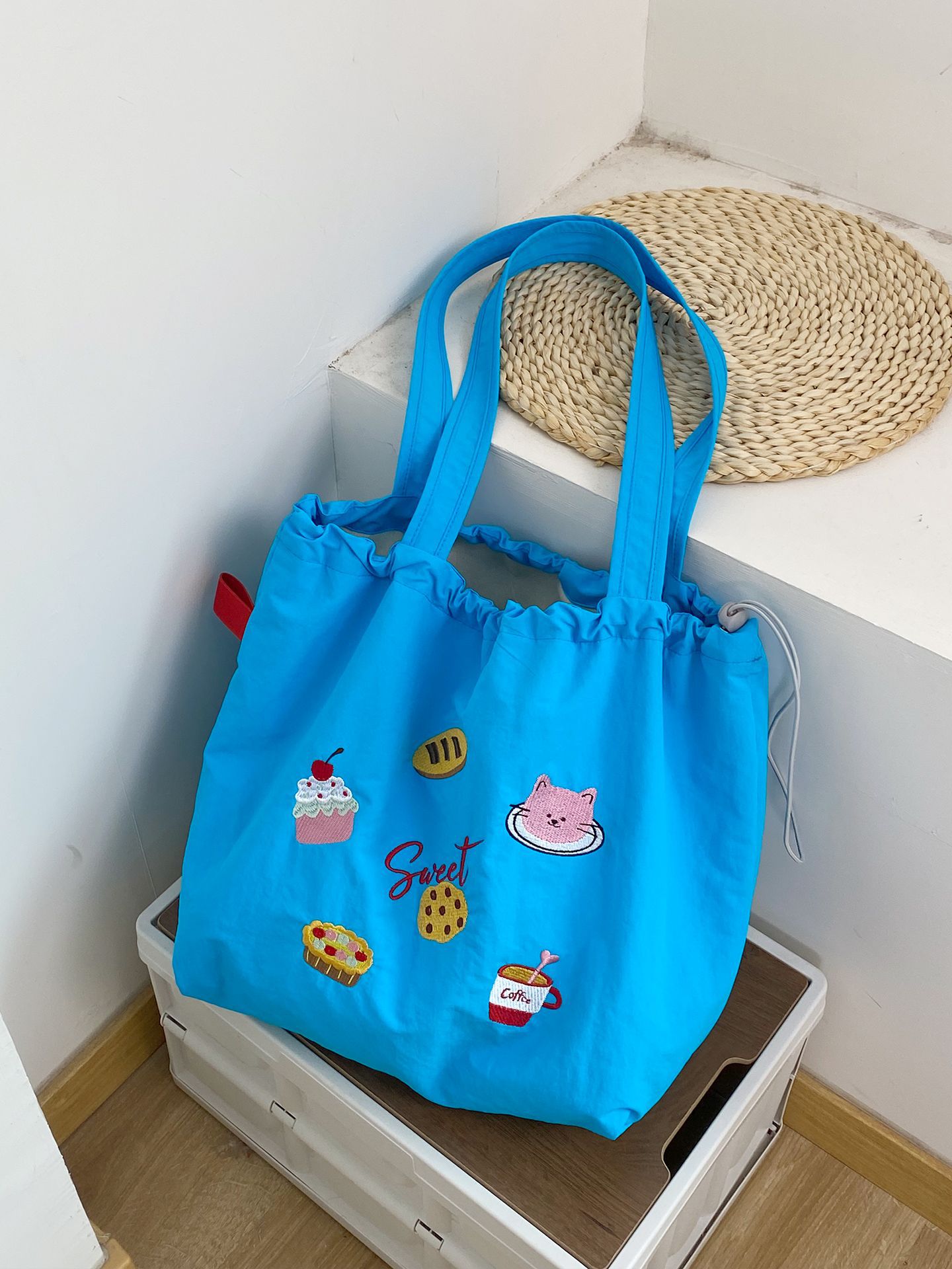 한국 스타일 새 편지 인쇄 가방 여성 대용량 나일론 어깨 가방 캐주얼 올 매치 휴대용 줄거리 가방스토어 가기