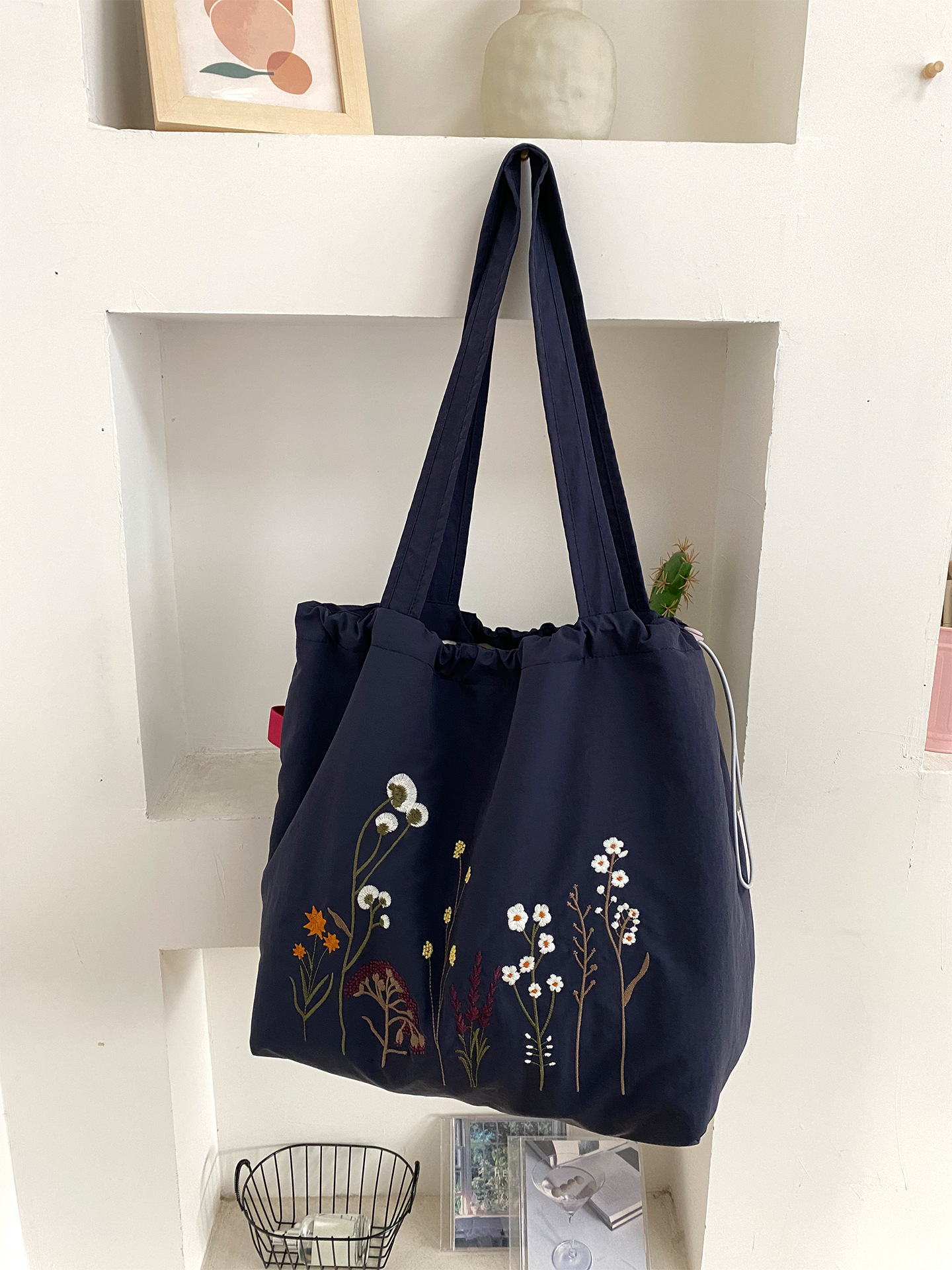 • 레트로 드라이플라워 나일론 더블 레이어 모델(두꺼운 안감) - 네이비블루