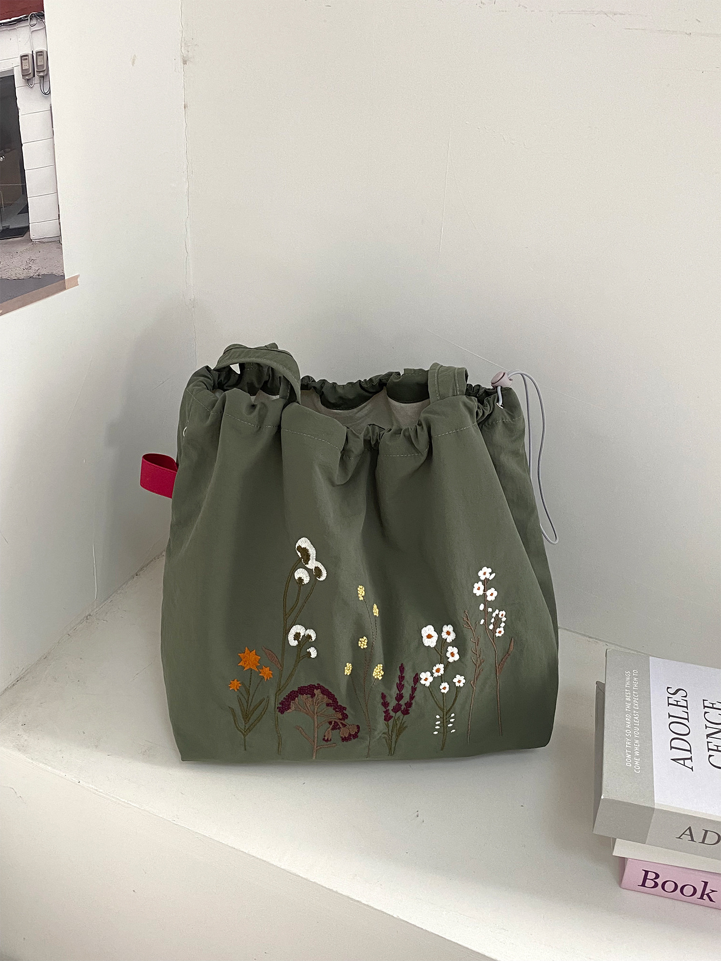 • 레트로 드라이플라워 나일론 더블 레이어 모델(두꺼운 안감) - 밀리터리 그린