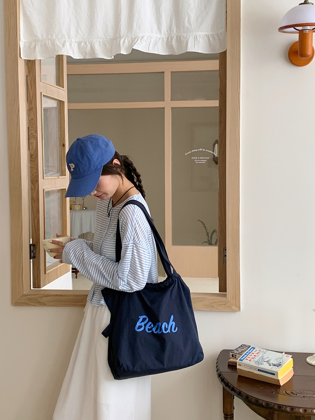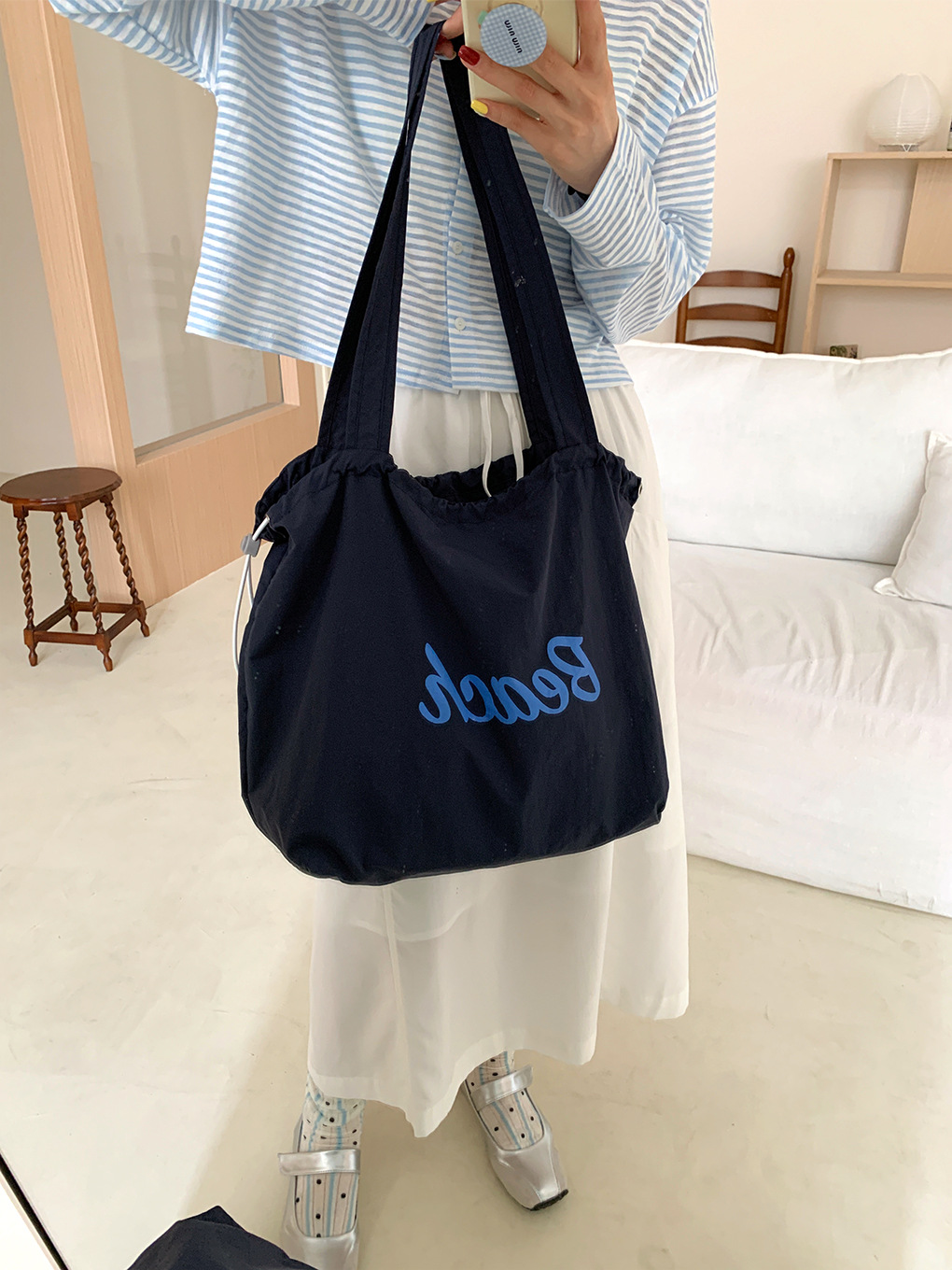 • 비치 나일론 가방-네이비