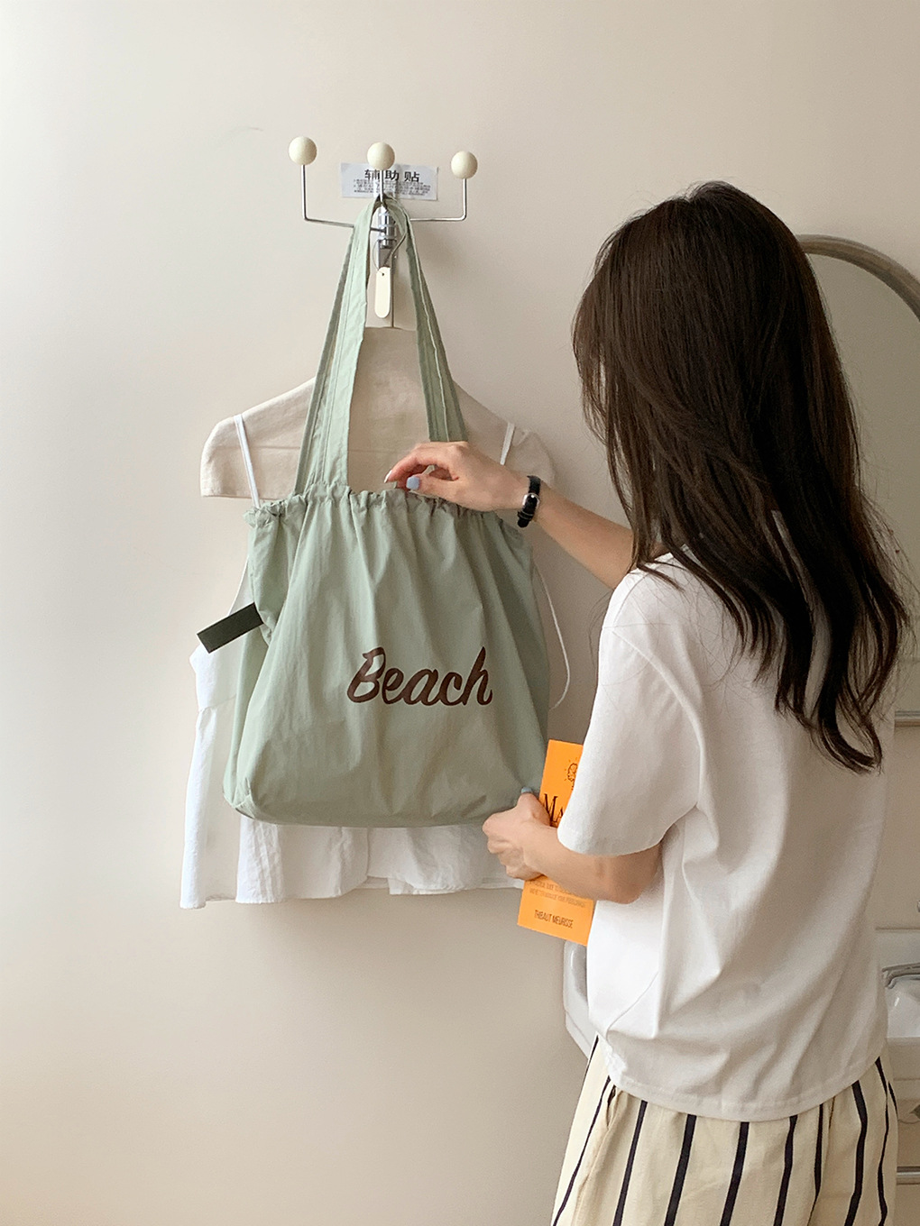 • 비치 나일론 가방-쌀 화이트
