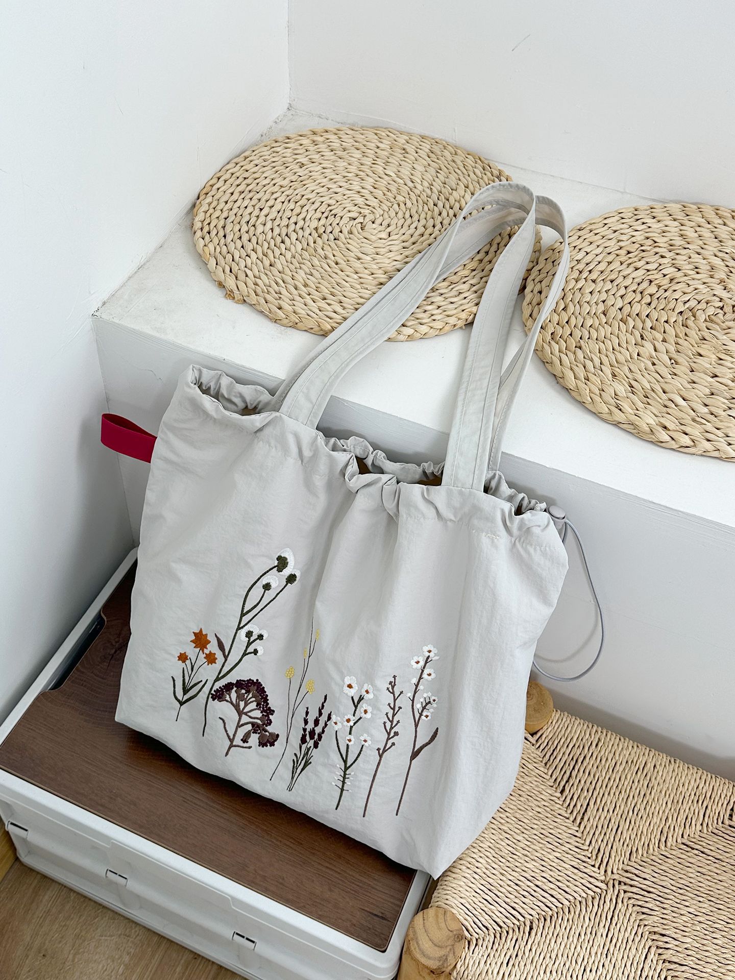 • 레트로 드라이플라워 나일론 더블 레이어 모델(두꺼운 안감) - 그레이