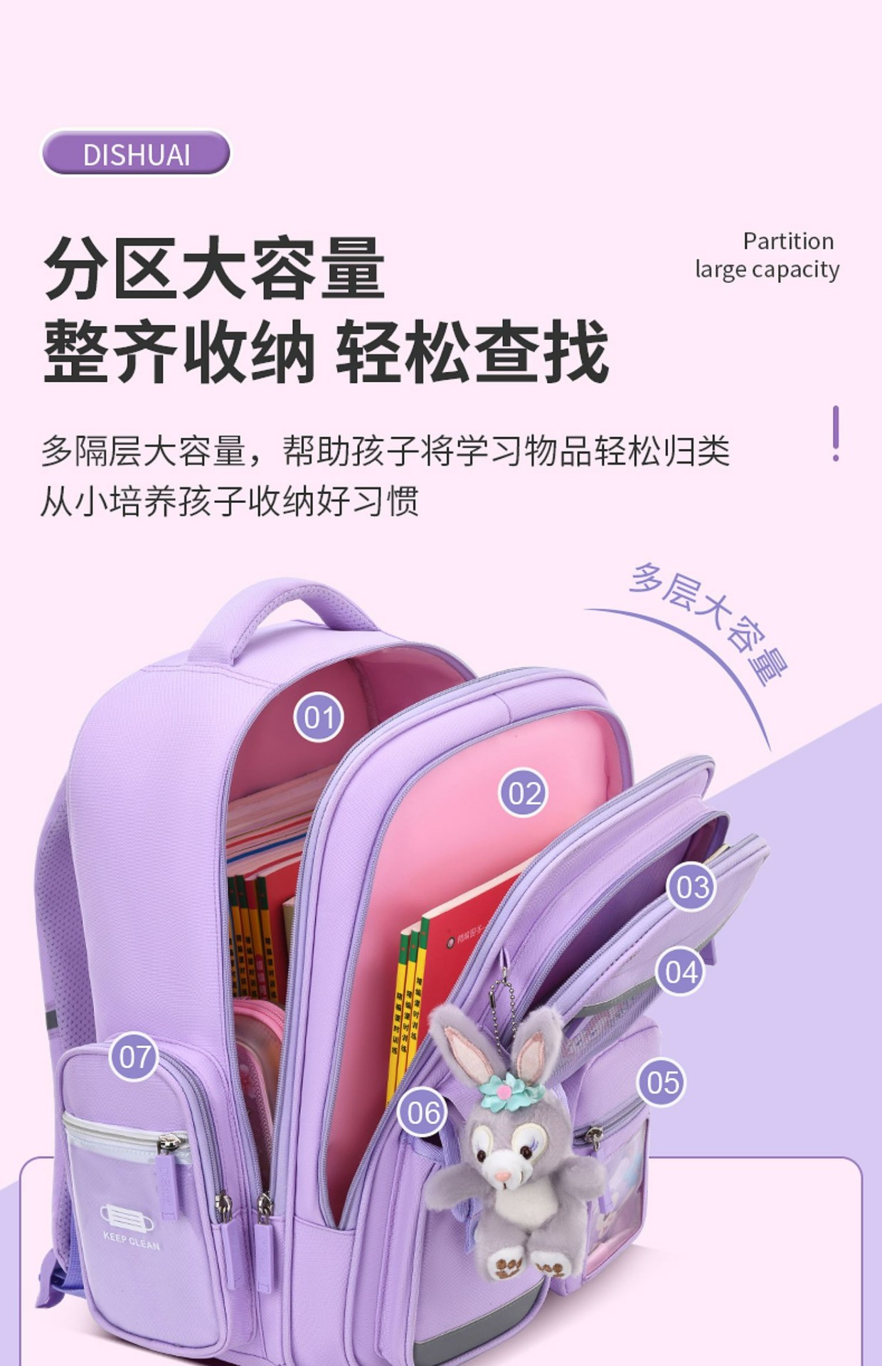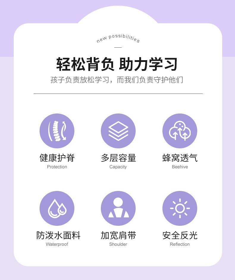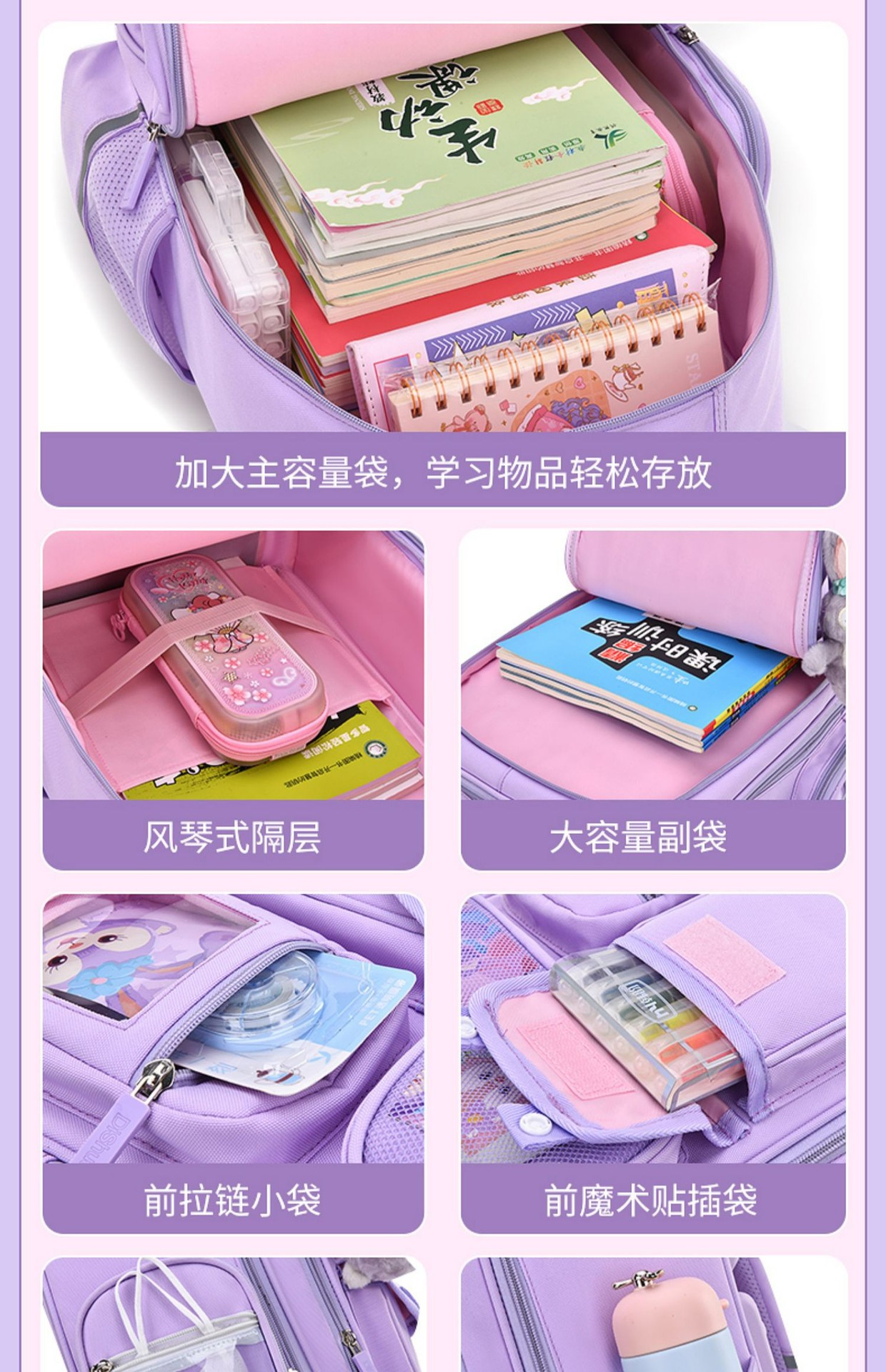새로운 초등학생 책가방, 어린이 부담을 줄여주는 1~3~6학년용 백팩, 방수, 대용량, 중간층이 있는 옥스포드 천