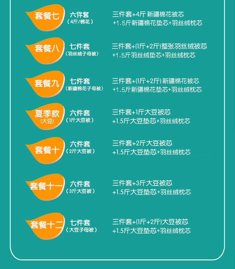 • 깃털벨벳 7종이불세트 [3종세트 + 이불( 0.5kg + 1.0kg ) + 쿠션심 + 베개심 ]