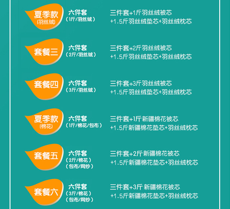 • 1.5kg 깃털벨벳 6종세트 [3종세트 + 1.5kg 이불심 + 쿠션심 + 베개심]