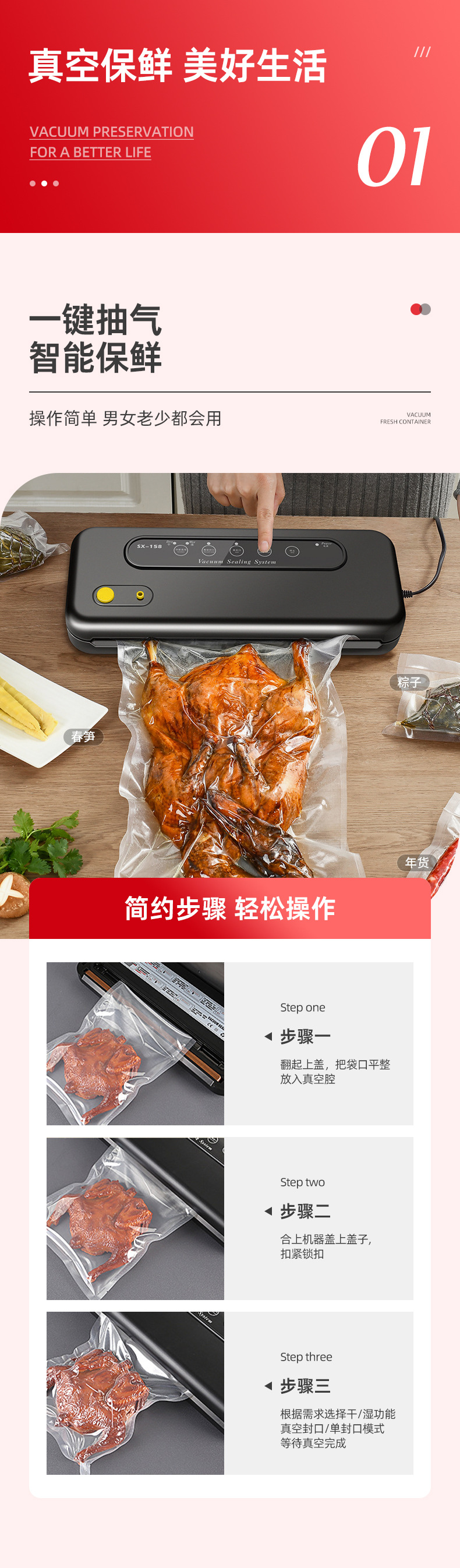진공 보존 포장 기계 진공 기계 가구 상업 매칭 식품 진공 포장 포켓 주방 플라스틱 포장스토어 가기