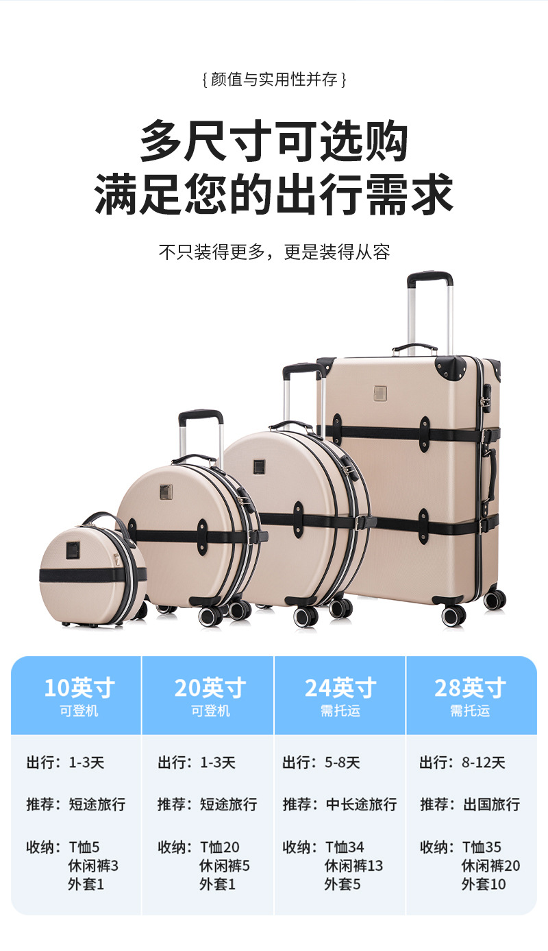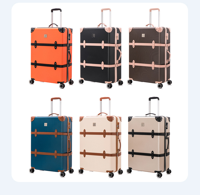 대외 무역 원형 사각형 여행 가방 복고풍 가방 4피스 세트 PU 코너 벨트 장식 2피스 트롤리 케이스스토어 가기