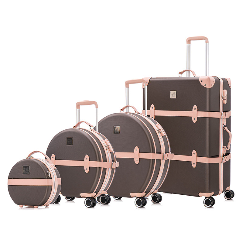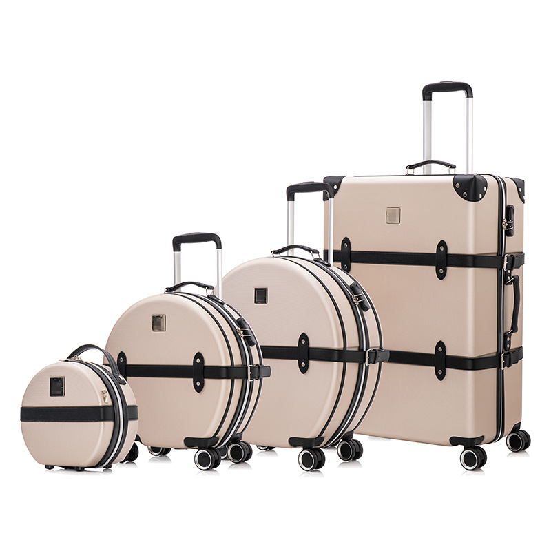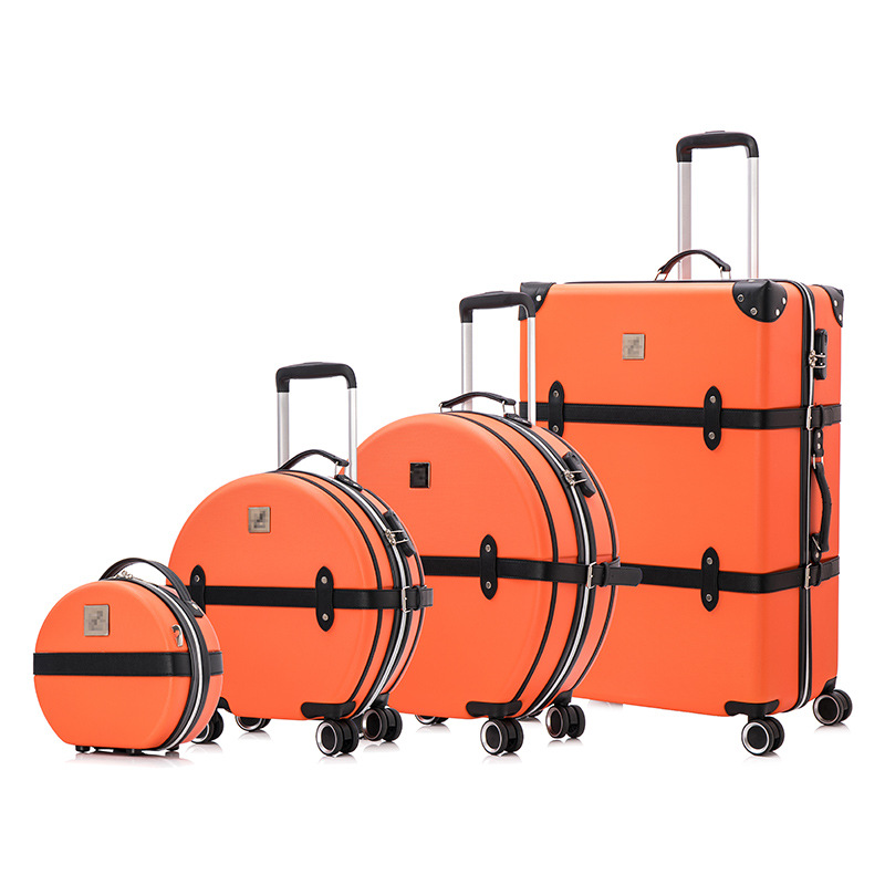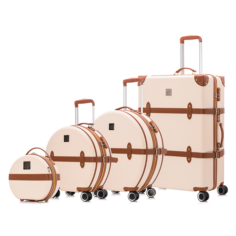 대외 무역 원형 사각형 여행 가방 복고풍 가방 4피스 세트 PU 코너 벨트 장식 2피스 트롤리 케이스