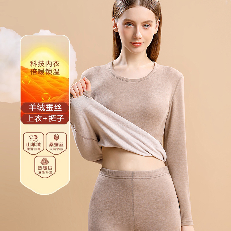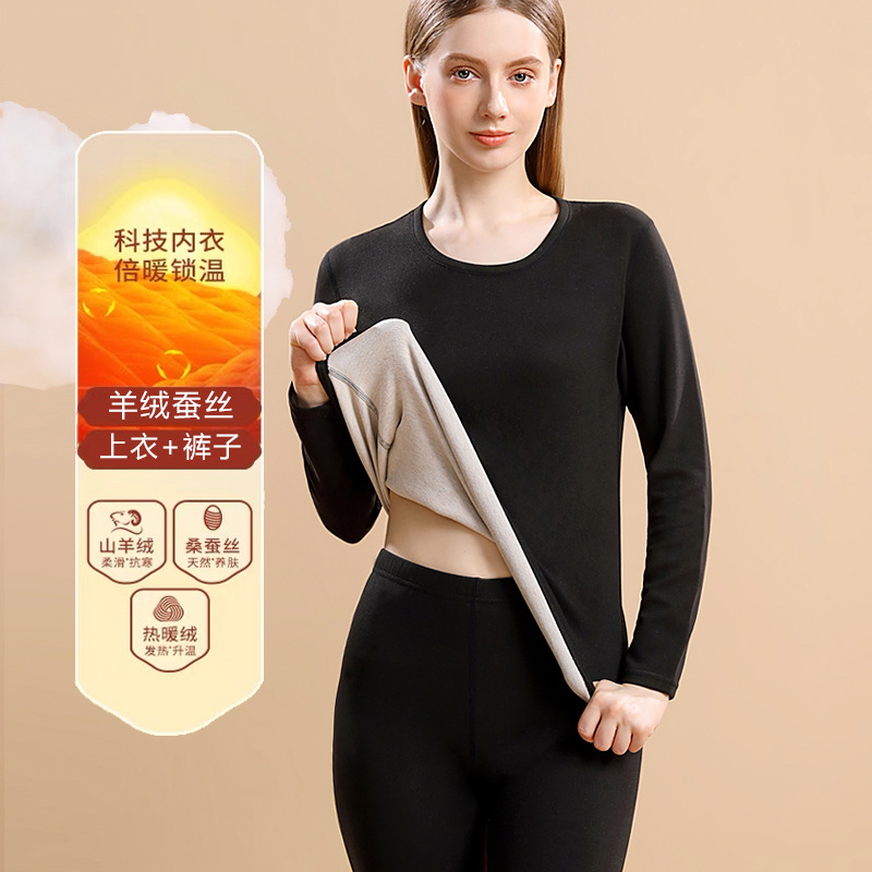 캐시미어 실크 남성과 여성의 세트 기모 가을 옷과 가을 바지 독일 벨벳 열 속옷 커플의 Bottoming Bottoming 셔츠 겨울스토어 가기