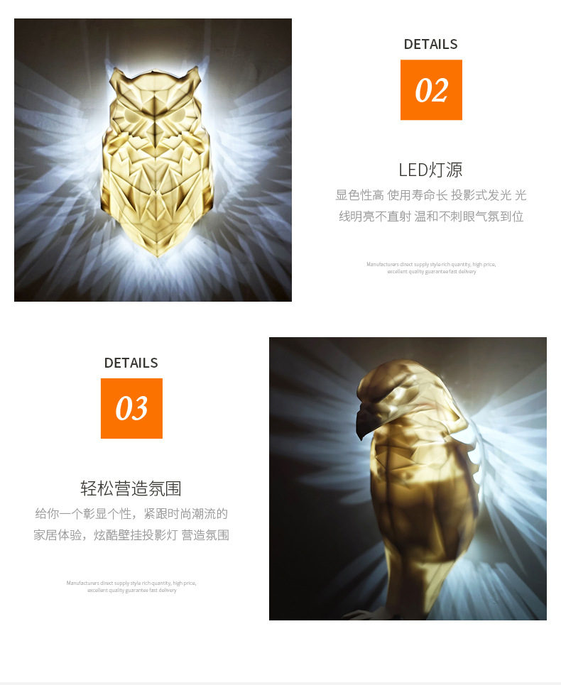 국경 주입 올빼미 밤 빛 벽 장식 빛 실내 파티 동물 장식 제조 업체 도매