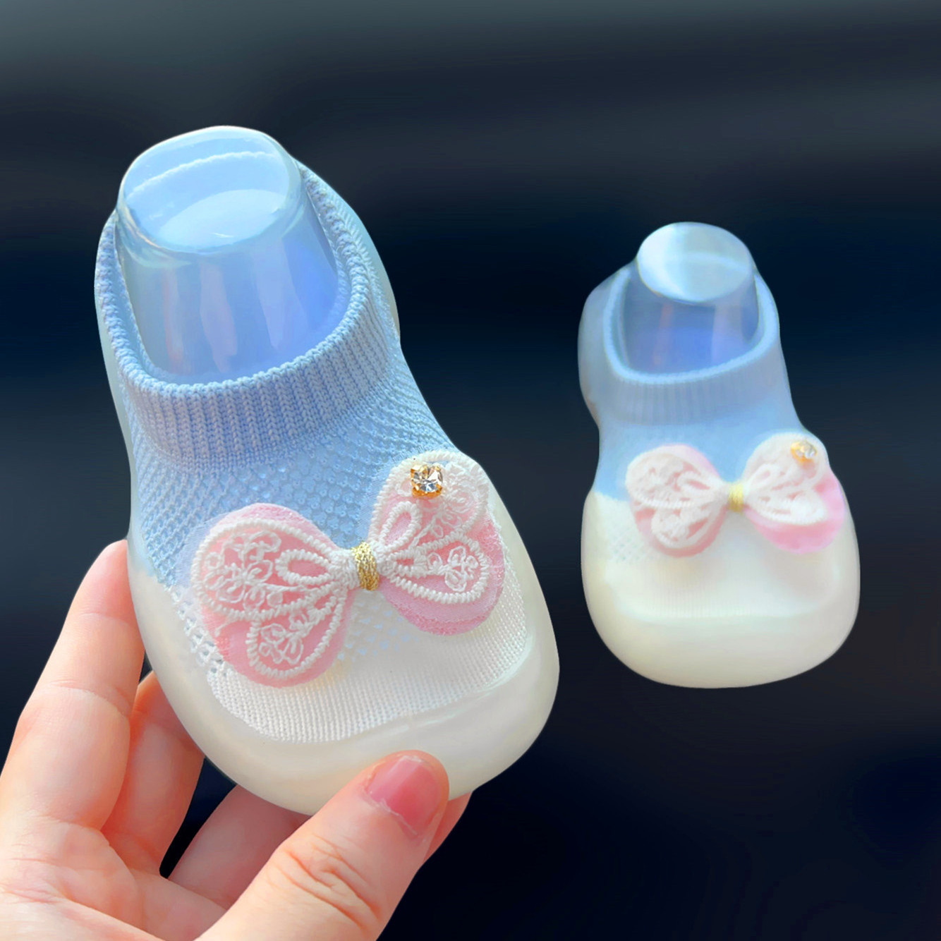 여름 여아 메쉬 걸음마 신발 공주 샌들 유아용 부드러운 밑창 실내 바닥 신발 양말 신발 얇고 통기성
