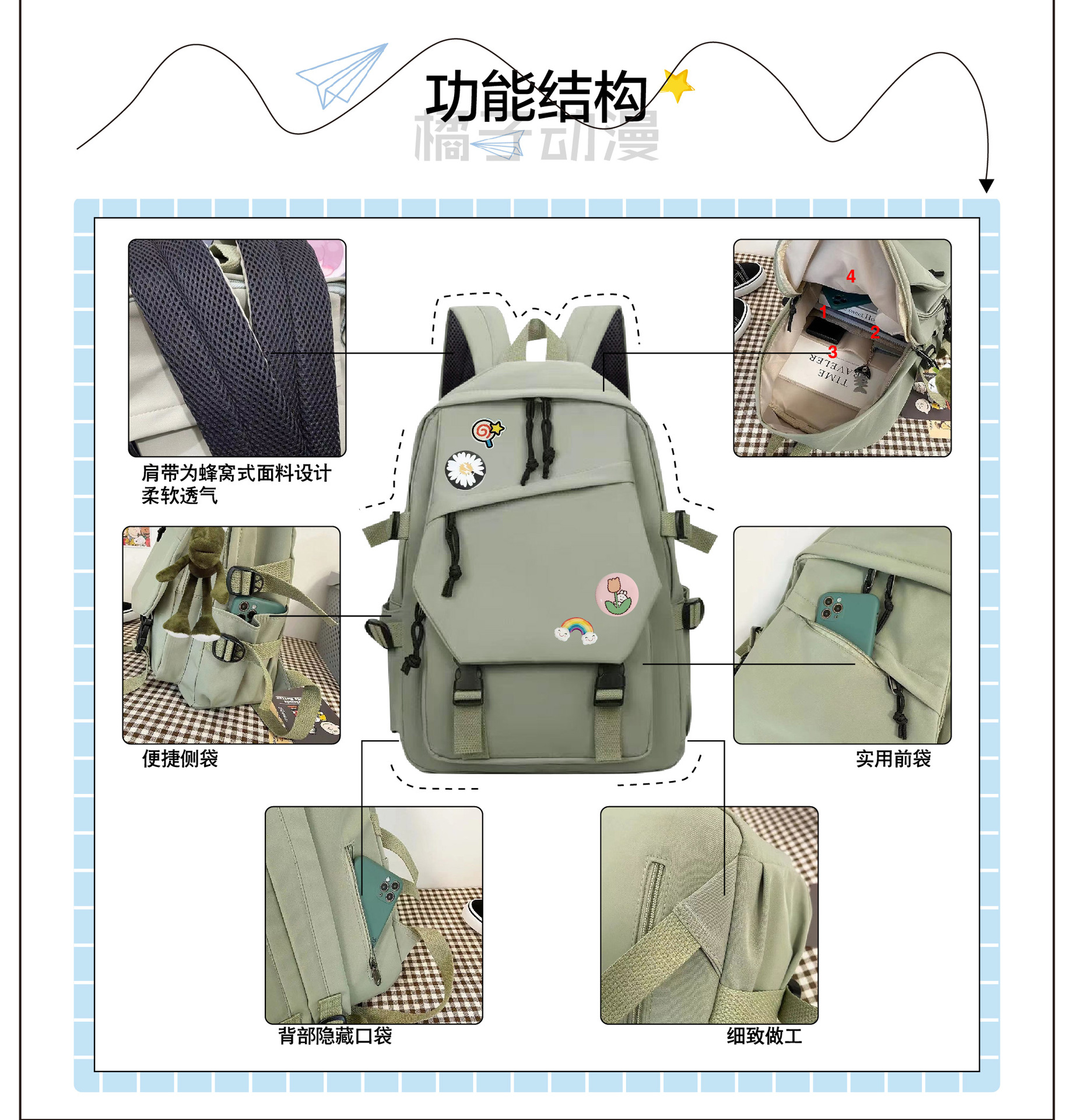 즐겁고 게으른 초등학교 학교 가방 만화 배낭 어린이 배낭 중학생 남녀 대용량