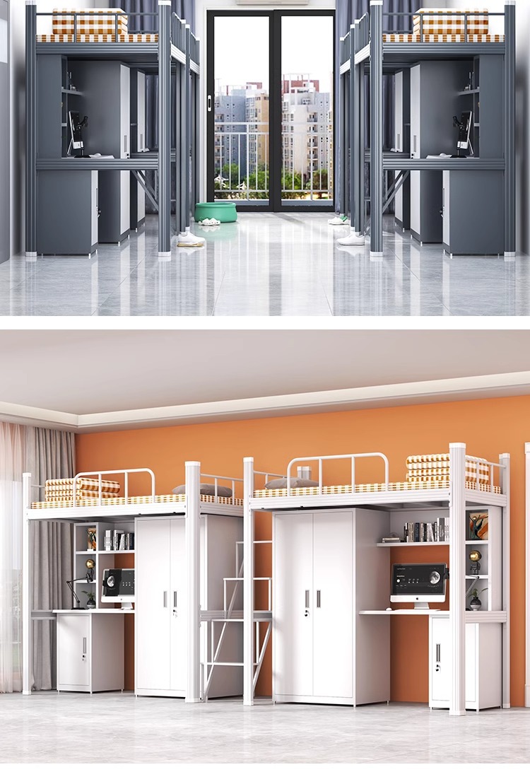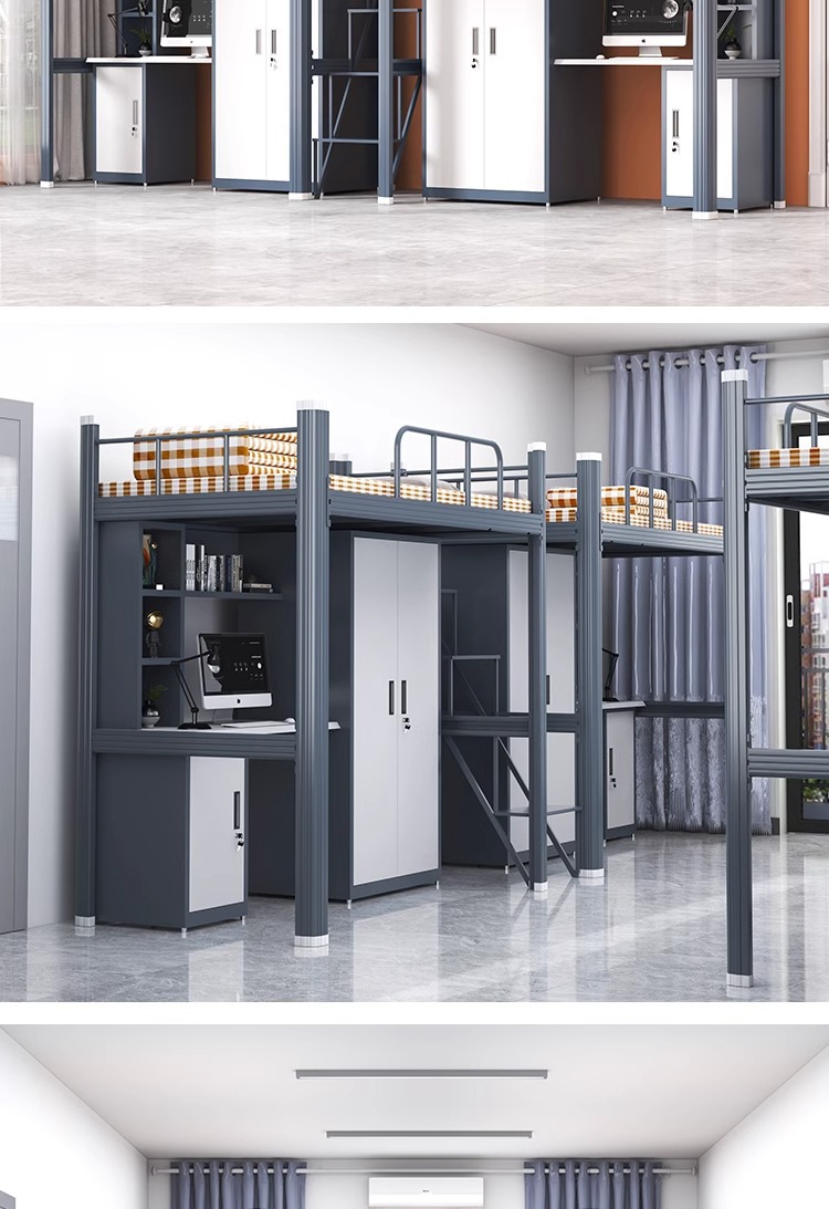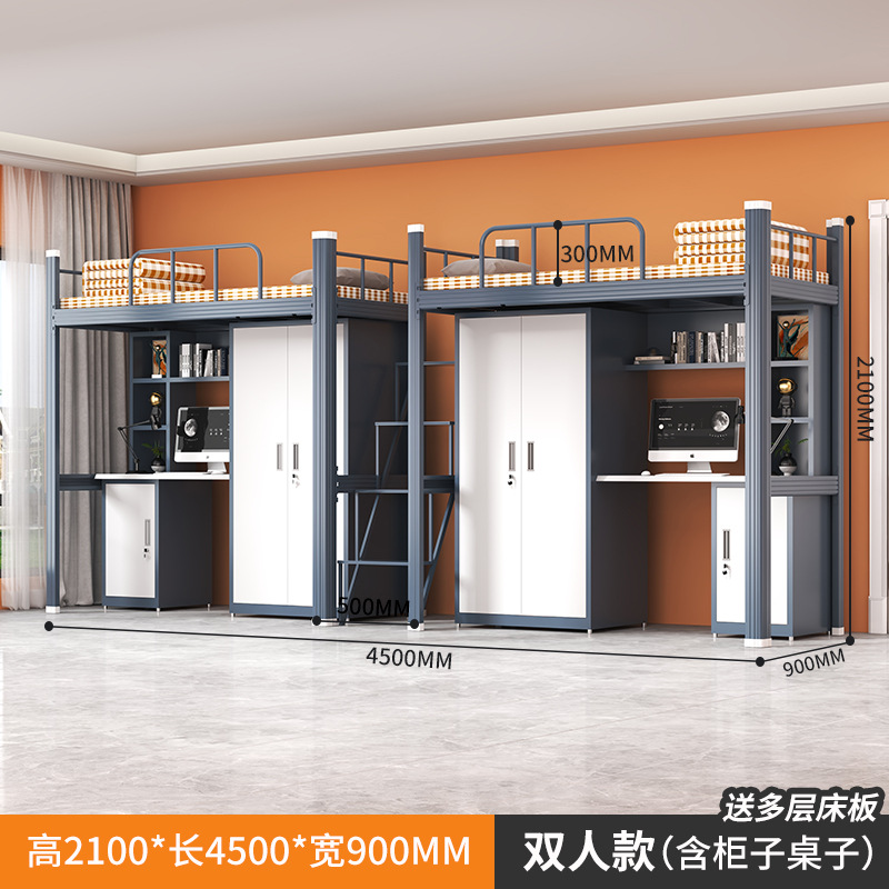 상하층 철제 침대 학생 기숙사 이층 침대 직원 기숙사 높낮이 철제 프레임 침대 성인 아파트 철제 더블 침대