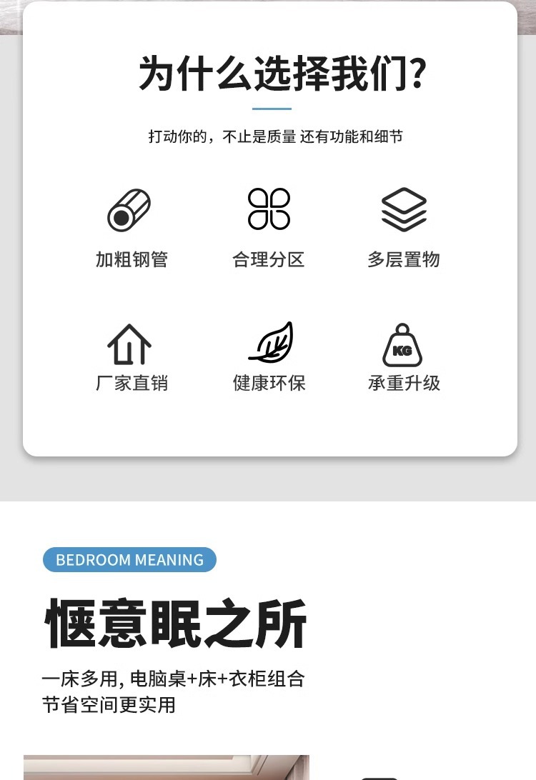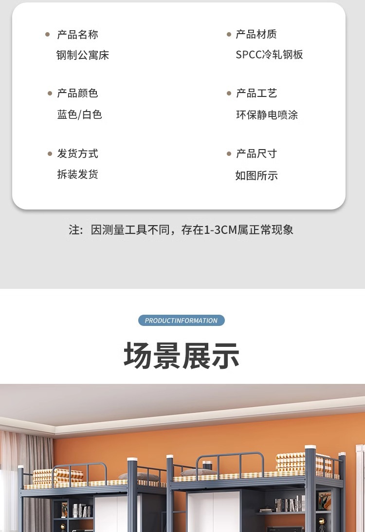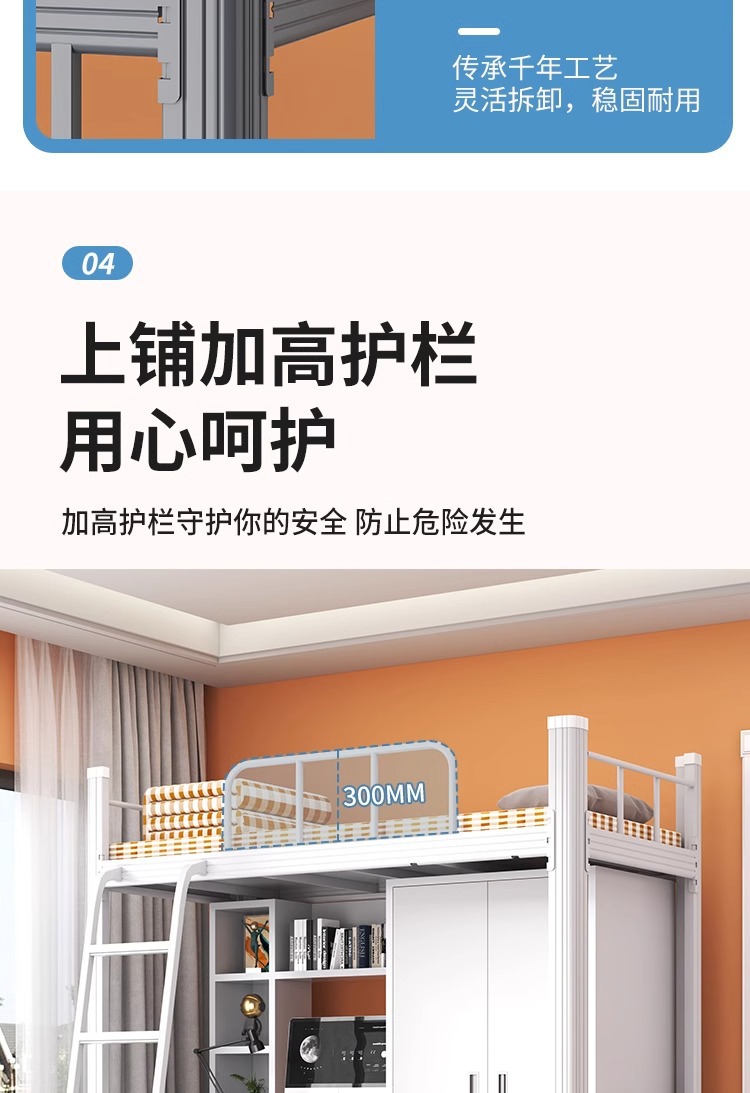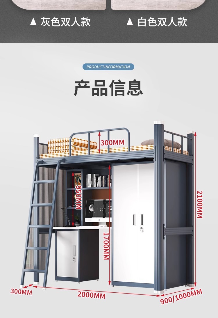 • 순백색 이층 침대 + 무료 원목 침대 보드 + 무료 3CM 매트리스 + 침대 밑 캐비닛