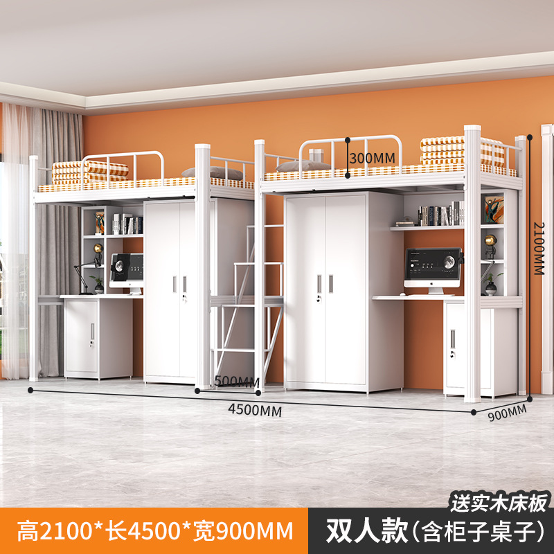 • 순백색 더블 럭셔리 로프트 침대(철제 옷장 + 원목 침대판 + 데스크탑 + 책장 + 테이블 밑 수납장)