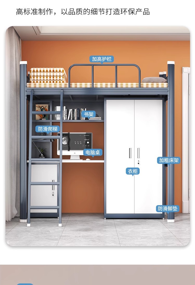 상하층 철제 침대 학생 기숙사 이층 침대 직원 기숙사 높낮이 철제 프레임 침대 성인 아파트 철제 더블 침대스토어 가기