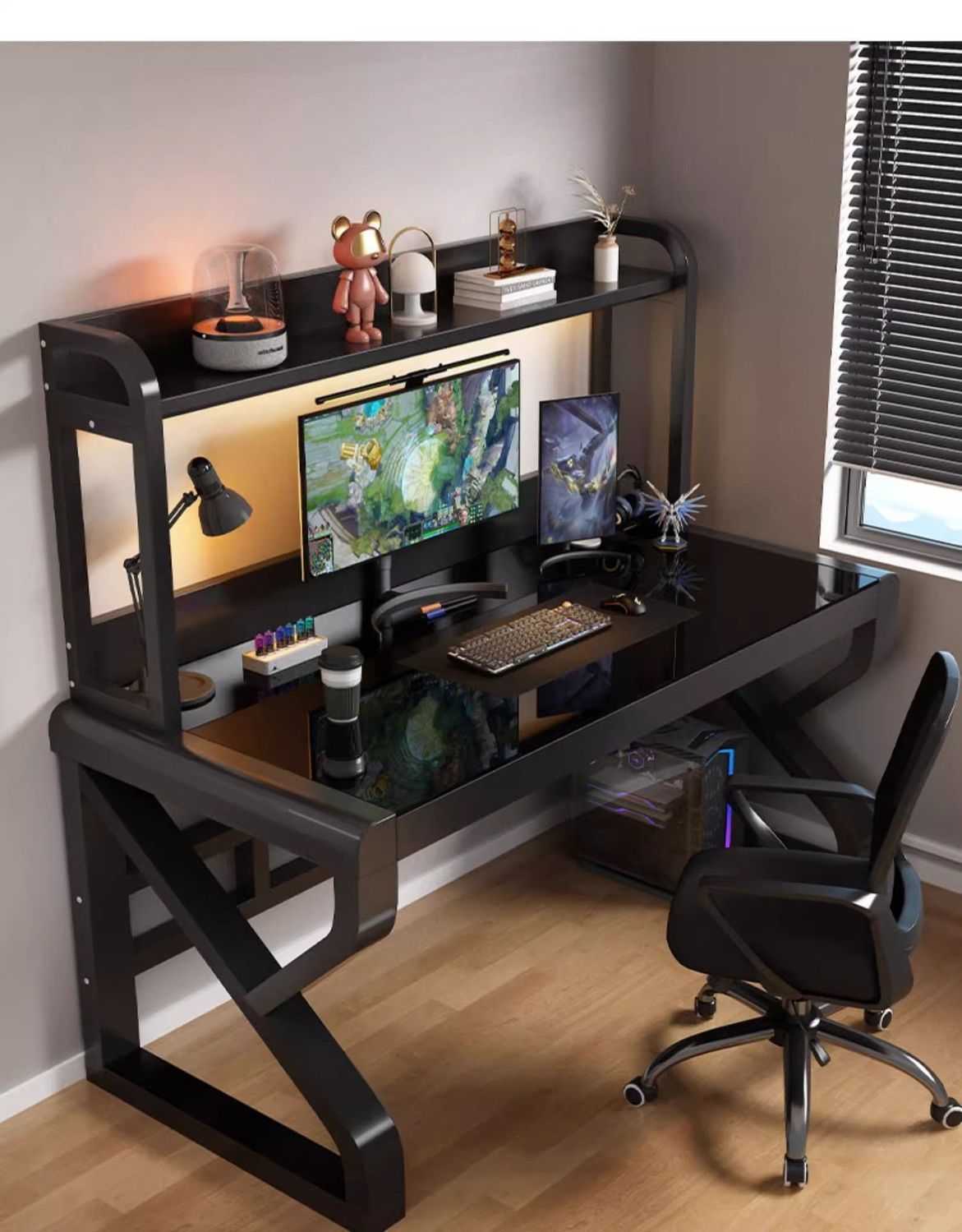 • [굵게 업그레이드 및 두꺼워짐] 블랙 유리 + 블랙 프레임 [책장 포함]