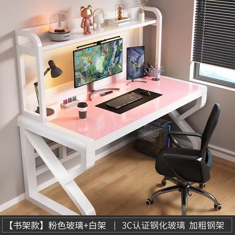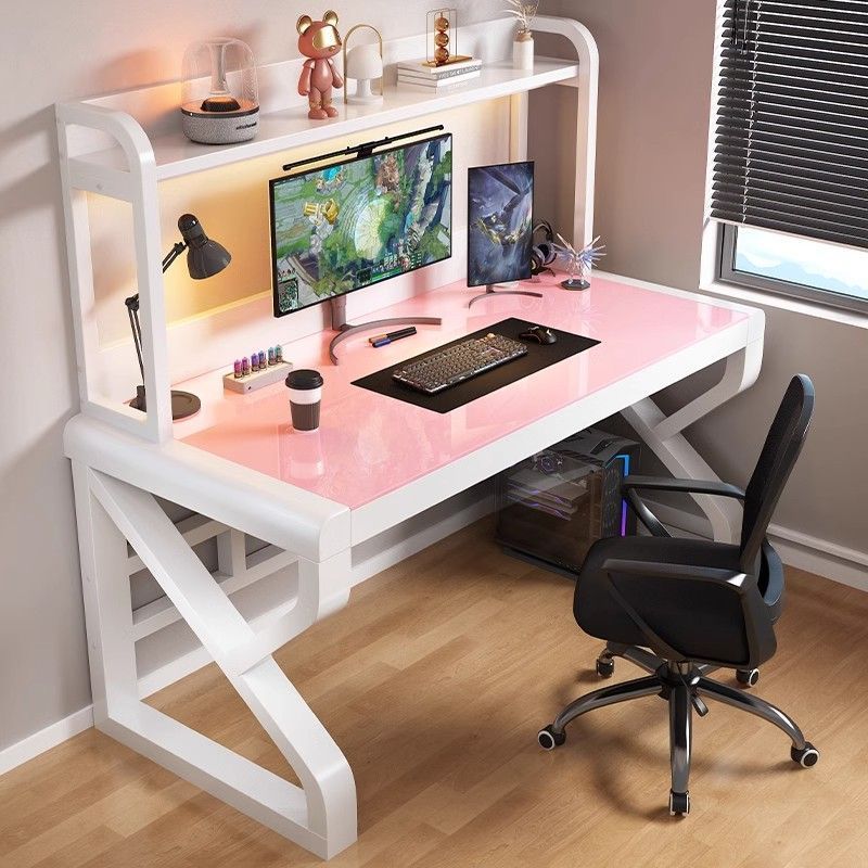 • [굵게 업그레이드 및 두꺼워짐] 핑크색 유리 + 흰색 선반 [책장 포함]