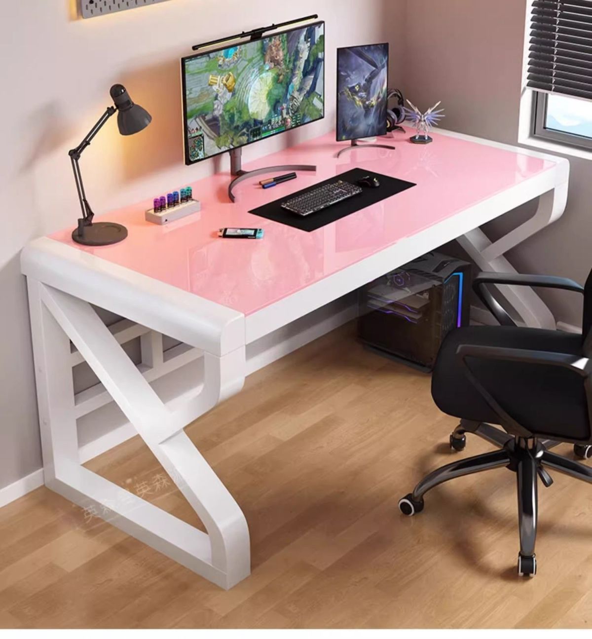 • [굵게 업그레이드 및 두꺼워짐] 핑크 유리 + 블랙 프레임 [책장 포함]