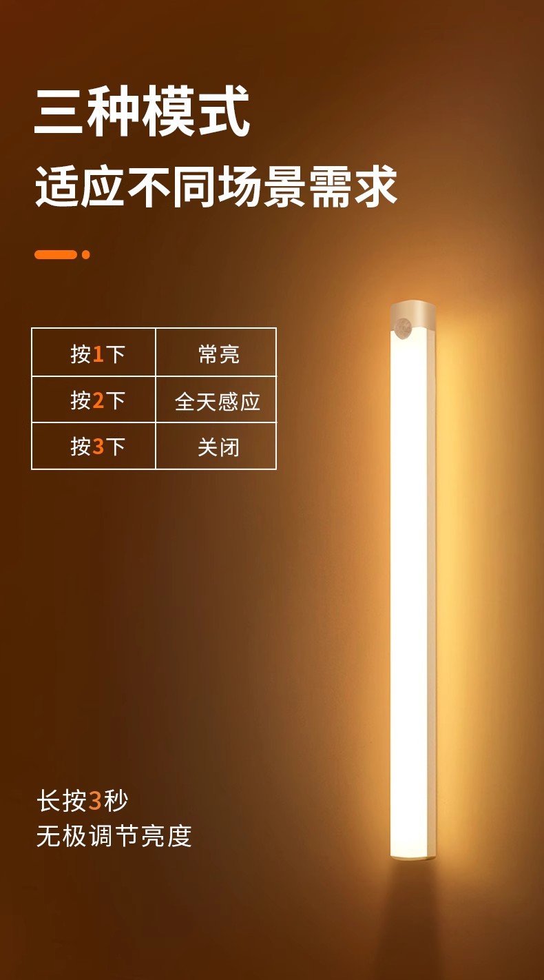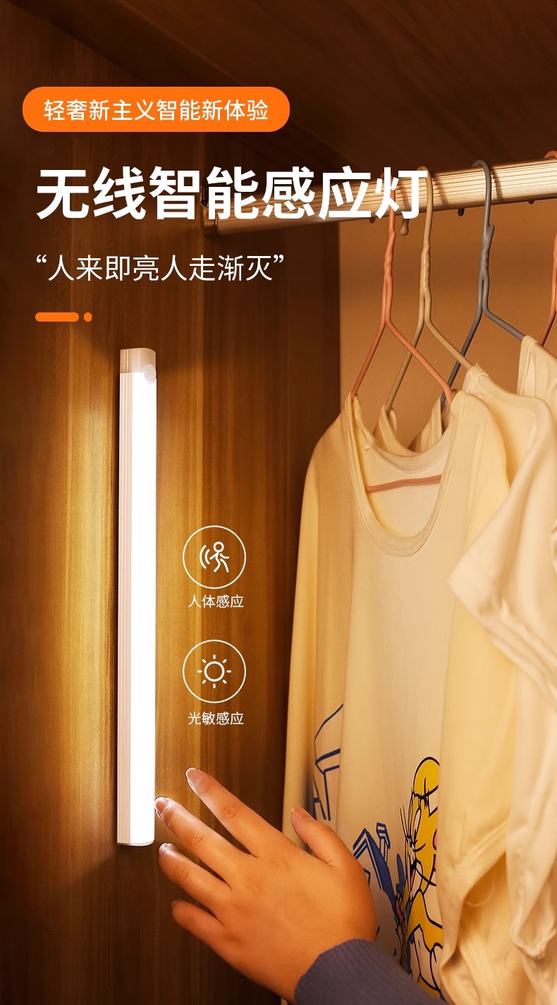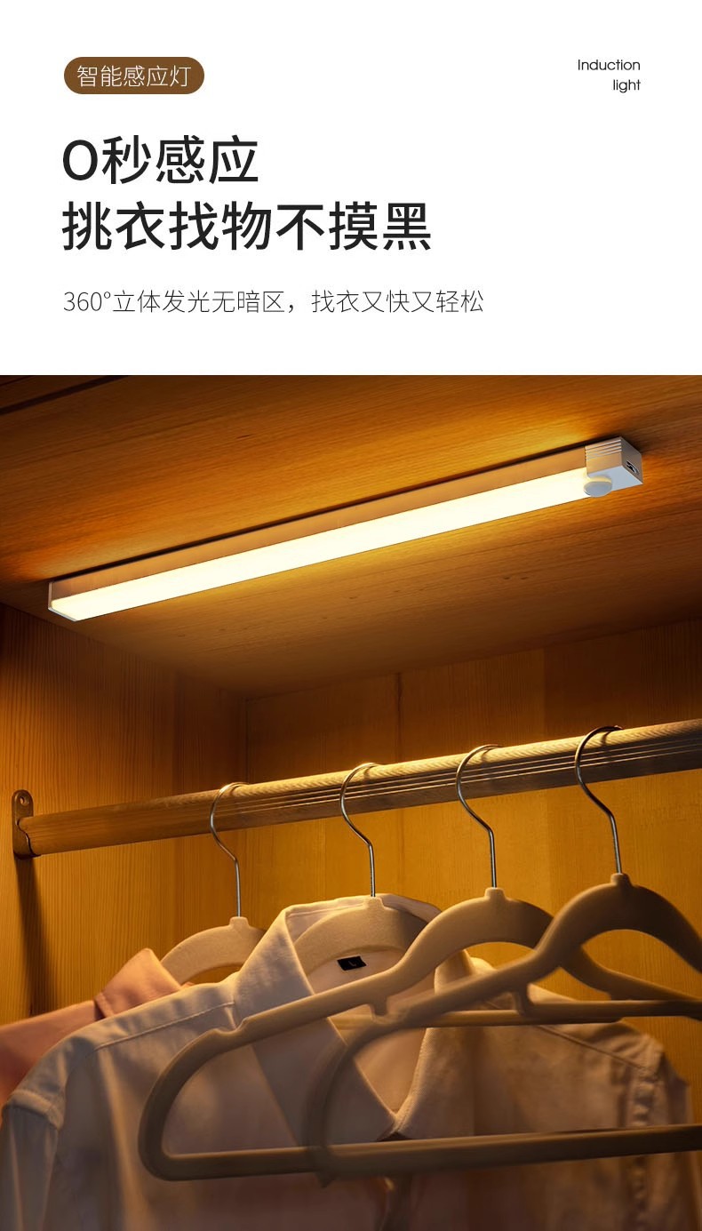친환경 인체감지 라이트 스트립 USB 충전 LED 옷장 조명 자석 부착형 캐비닛 복도 야간등 제조업체스토어 가기