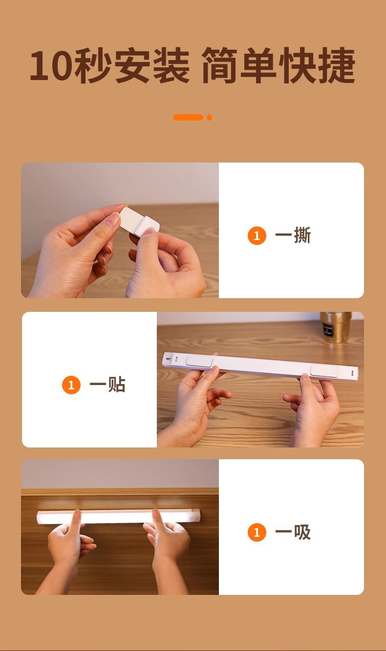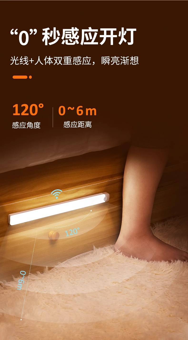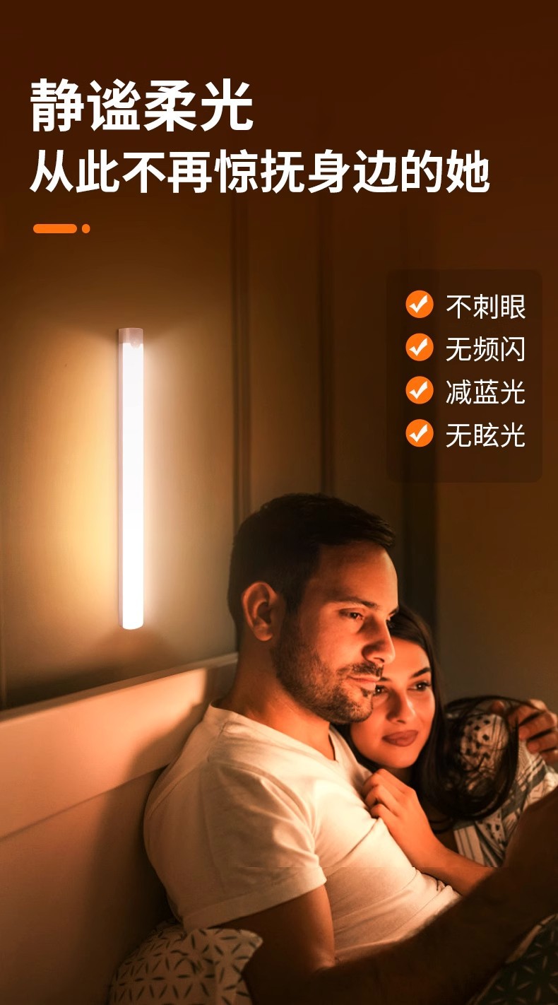 친환경 인체감지 라이트 스트립 USB 충전 LED 옷장 조명 자석 부착형 캐비닛 복도 야간등 제조업체스토어 가기