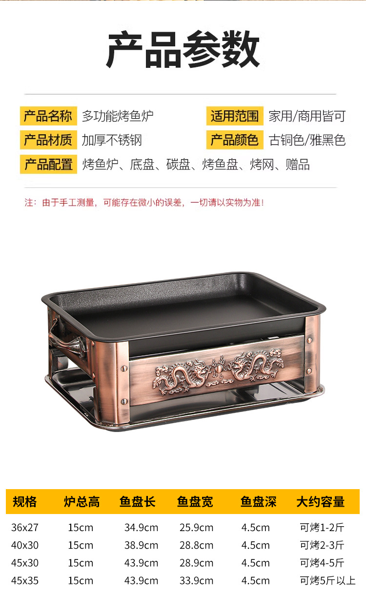 생선 그릴 두꺼운 스테인레스 스틸 생선 그릴 가정용 상업용 탄소 오븐 알코올 오븐 숯 오븐 구운 생선 탄소 생선 접시스토어 가기