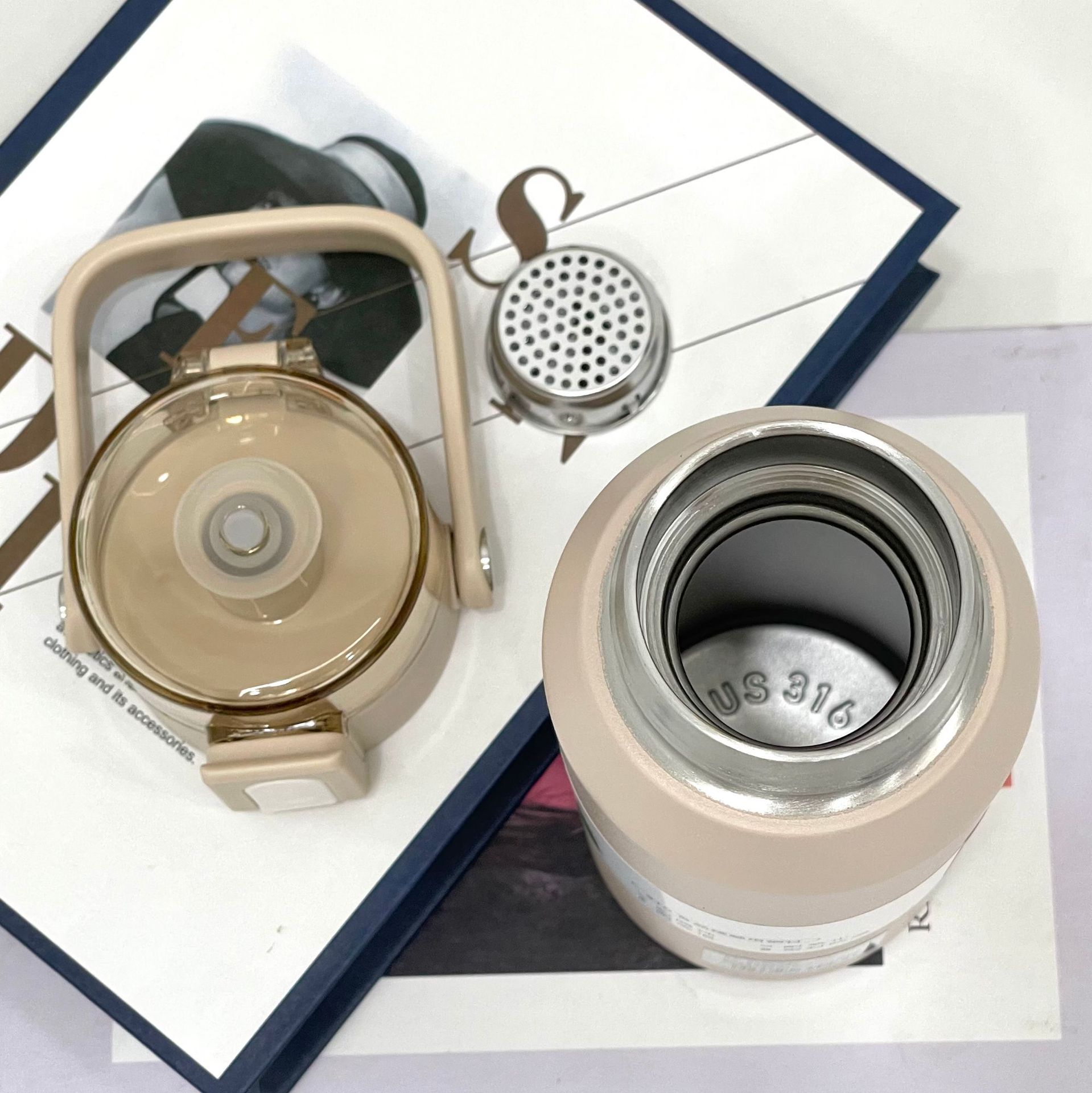 Xile 보온병 컵 대용량 그물 붉은 물 컵 남성과 여성의 316 스테인레스 스틸 높은 색 가치 물병 필터 보온병스토어 가기