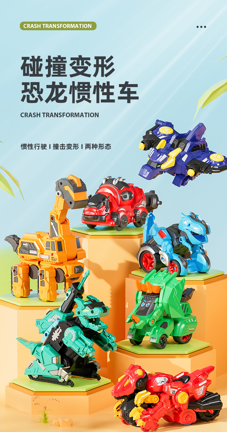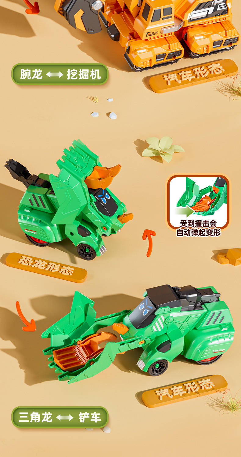 어린이와 소년을 위한 국경 간 관성 충돌 변형 공룡 장난감, 티라노사우루스 렉스 트리케라톱스 전차 도매스토어 가기