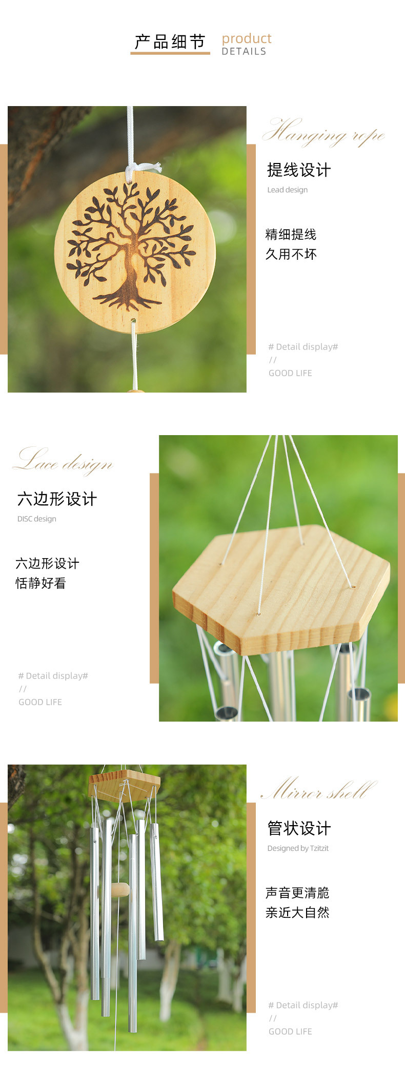 국경을 넘는 대나무 생명의 나무 풍경종 금속관 풍경종 발코니 장식품 속이 빈 생명의 나무 음악 풍경종스토어 가기