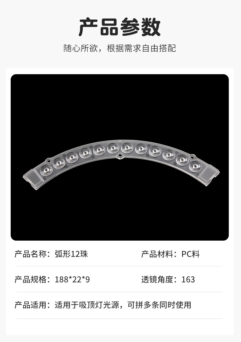 천장 팬 광원 곡선 렌즈 스트립 27cm 스몰 사이즈 곡선 LED 스트립 크리스탈 램프 심지스토어 가기