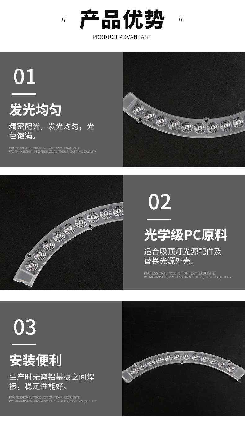 천장 팬 광원 곡선 렌즈 스트립 27cm 스몰 사이즈 곡선 LED 스트립 크리스탈 램프 심지