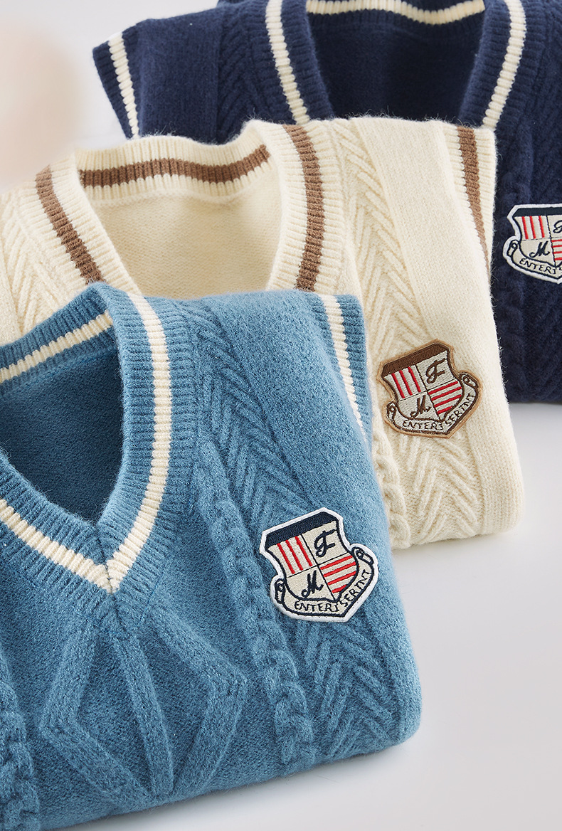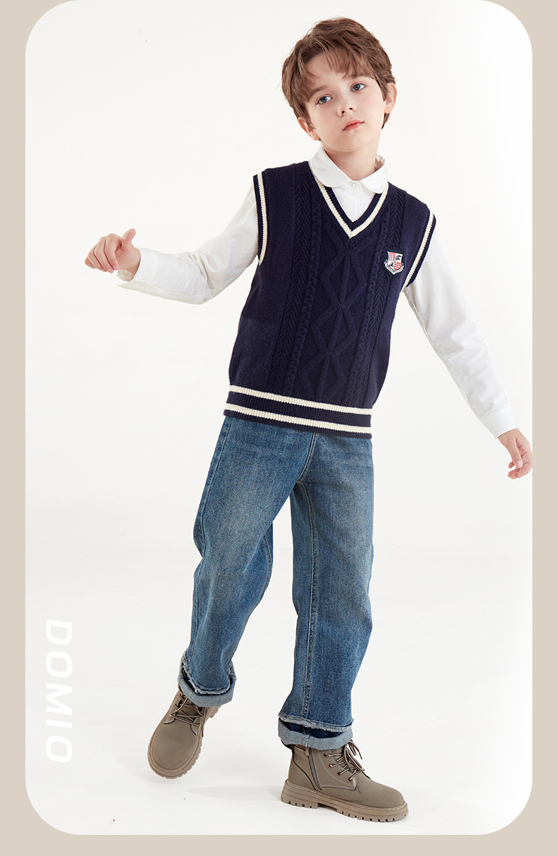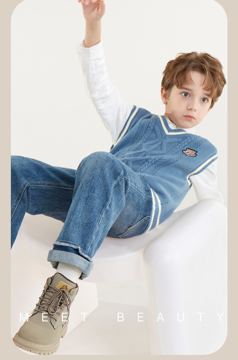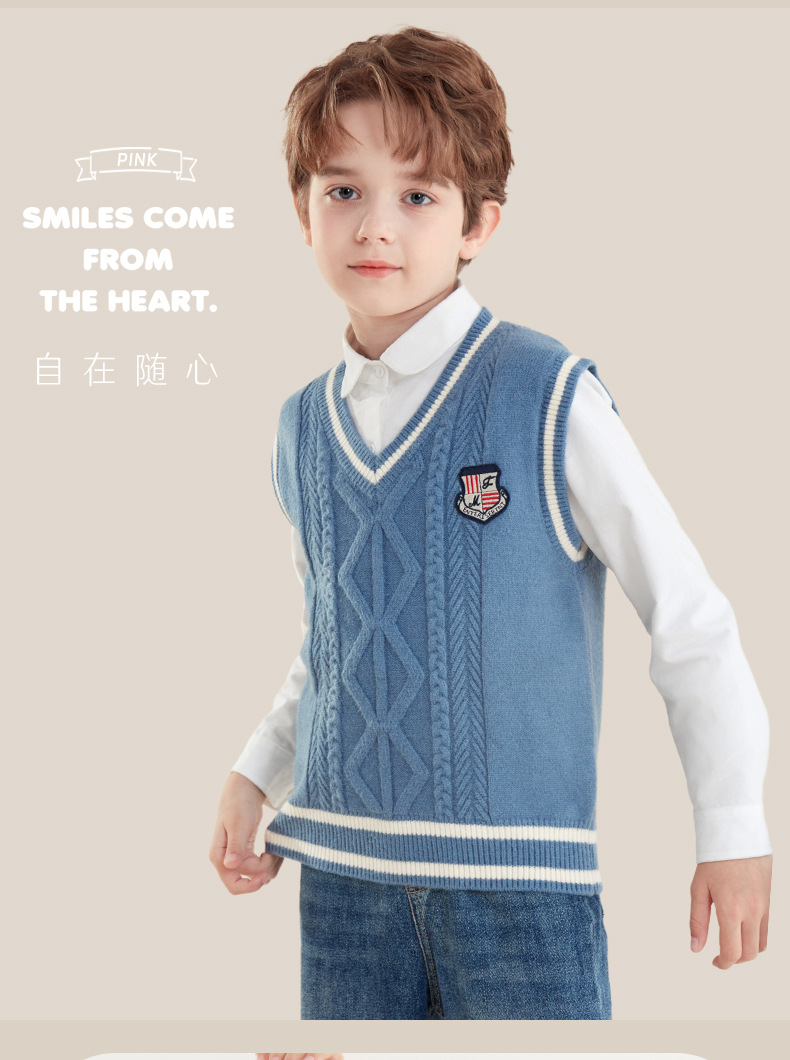 소년 조끼 봄과 가을 어린이 조끼 2024 새로운 가을과 겨울 중 큰 어린이 니트 웨이스트 코트 외부 스웨터 아동복스토어 가기