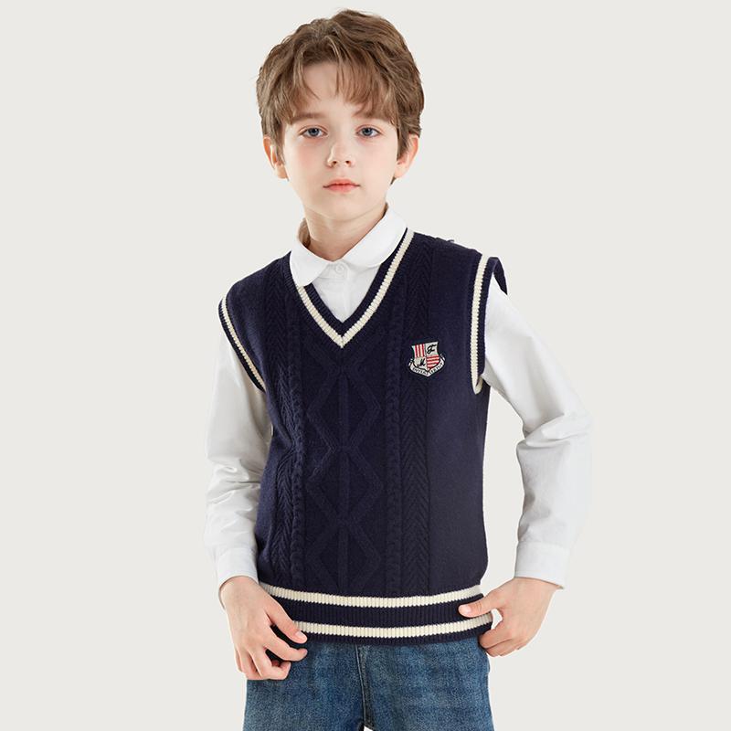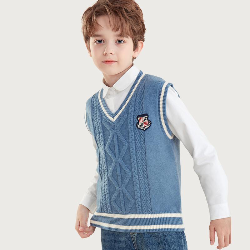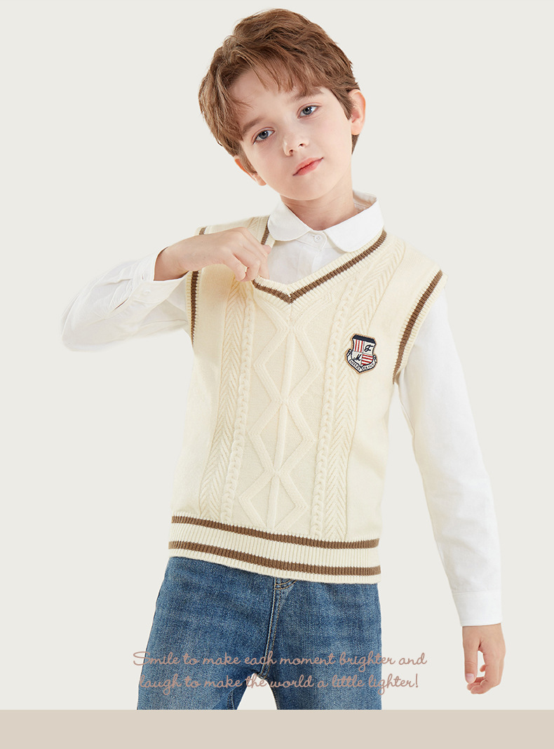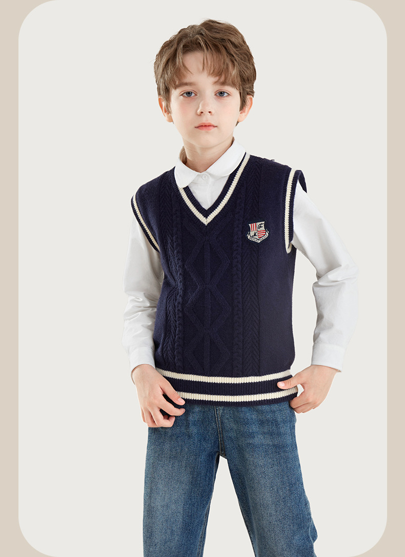 소년 조끼 봄과 가을 어린이 조끼 2024 새로운 가을과 겨울 중 큰 어린이 니트 웨이스트 코트 외부 스웨터 아동복