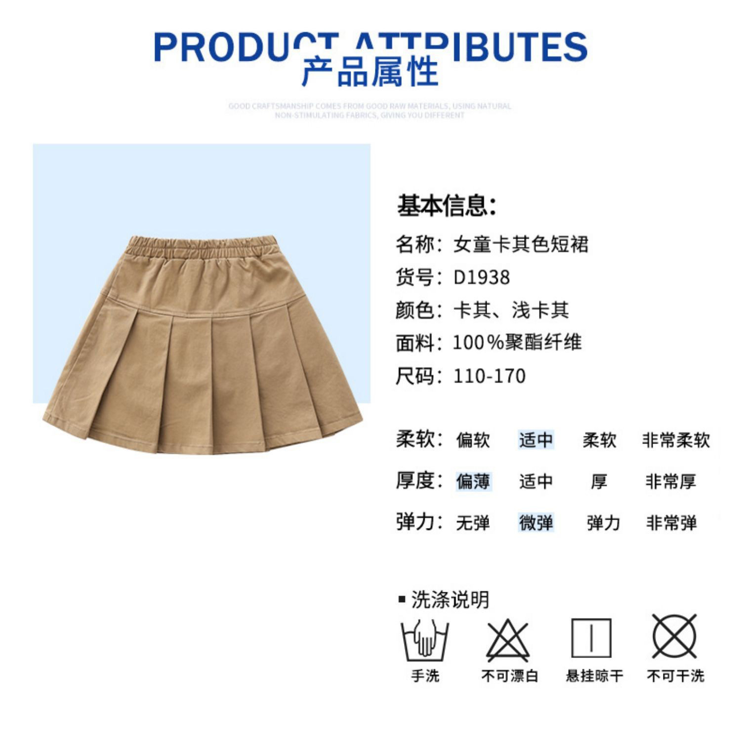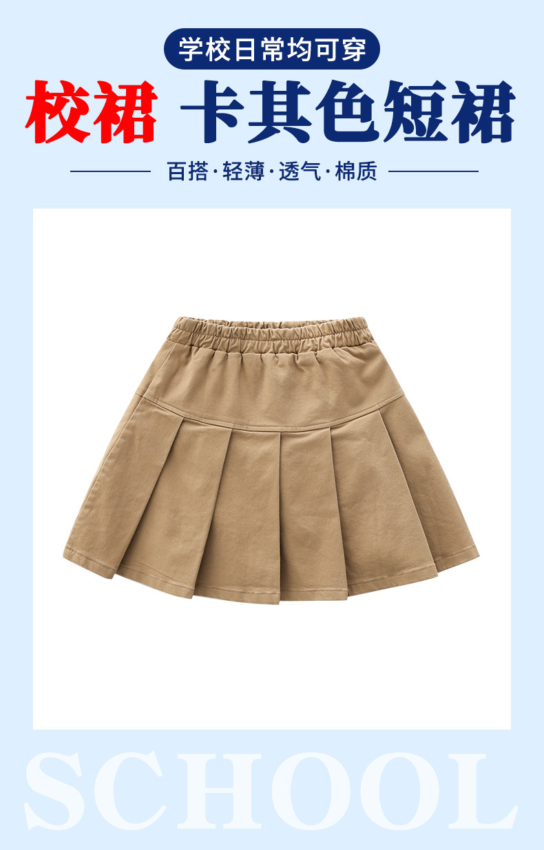 카키색 짧은 치마 어린이용 컬리지 스타일 노출방지 스커트 중대형 어린이 초등학생 교복 플리츠 스커트 영국 스타일스토어 가기
