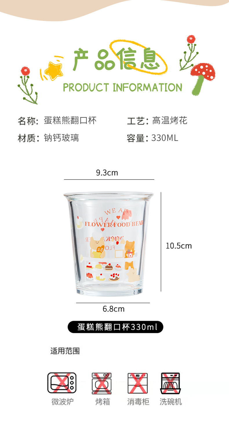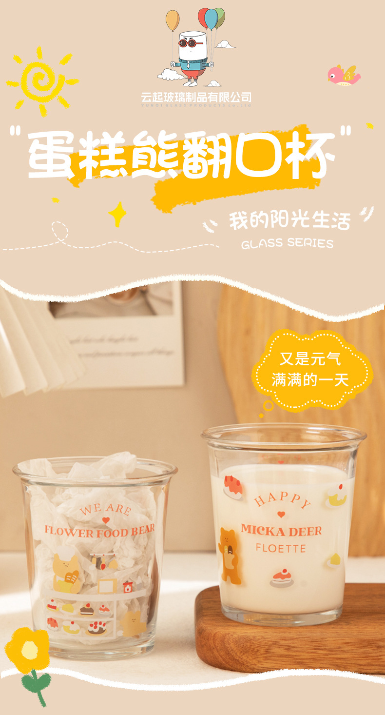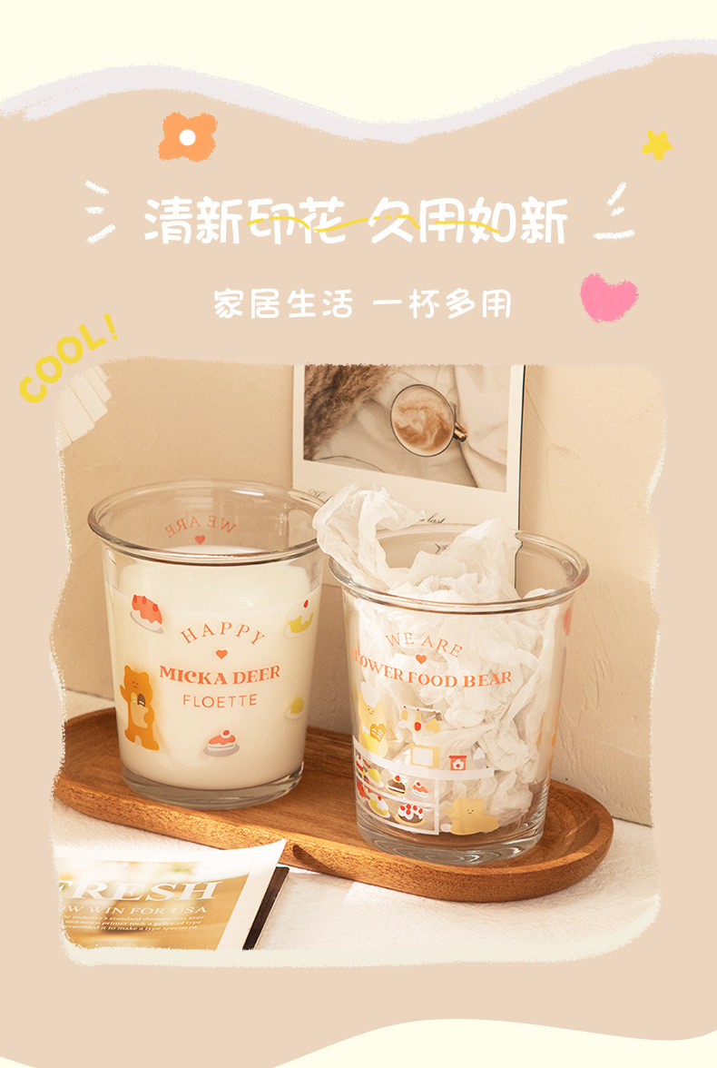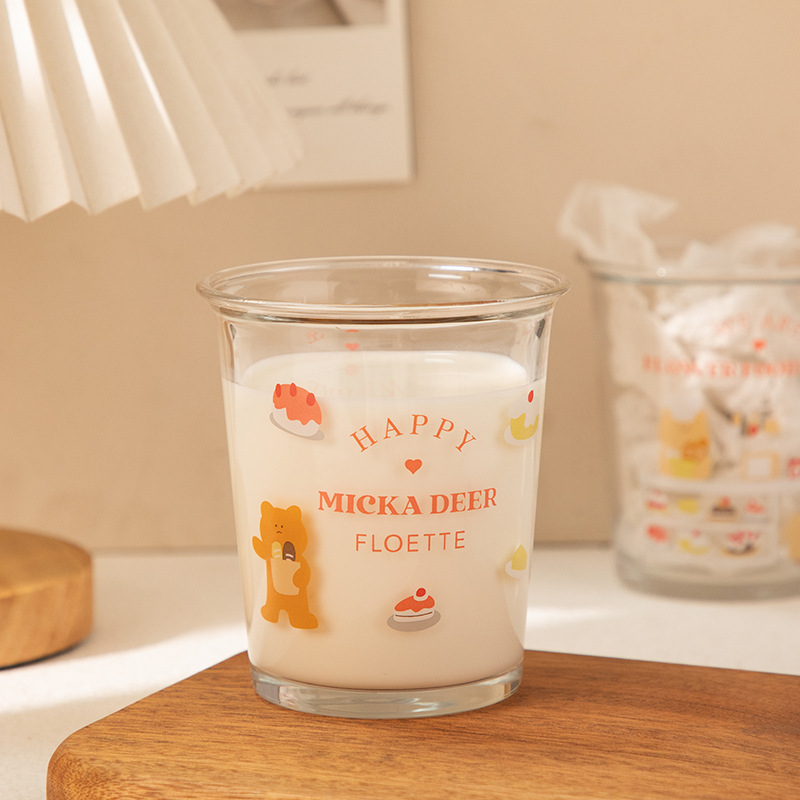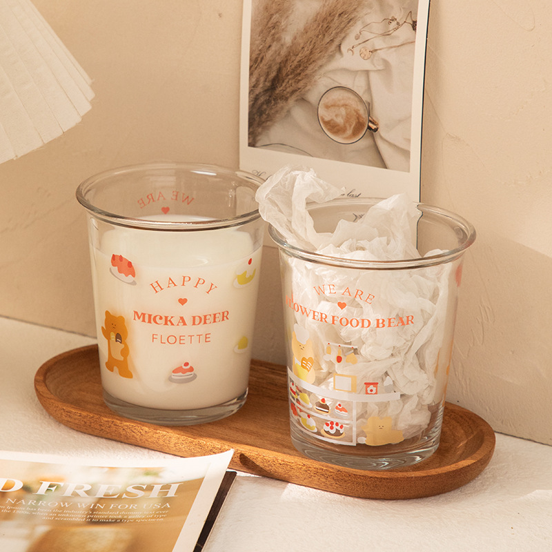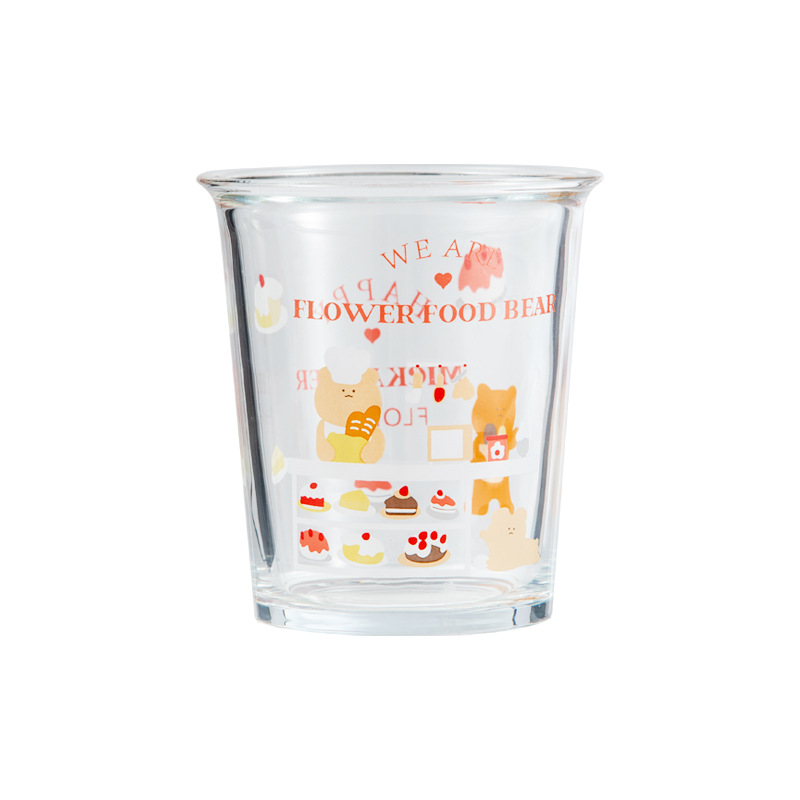만화 곰돌이 예쁜 유리컵, 심플한 림이 넓은 컵, 인터넷 인기 ins 스타일, 여자들이 좋아하는 예쁜 물컵, 커피컵스토어 가기
