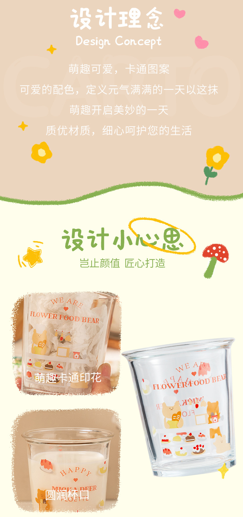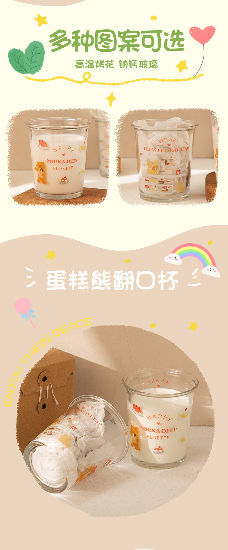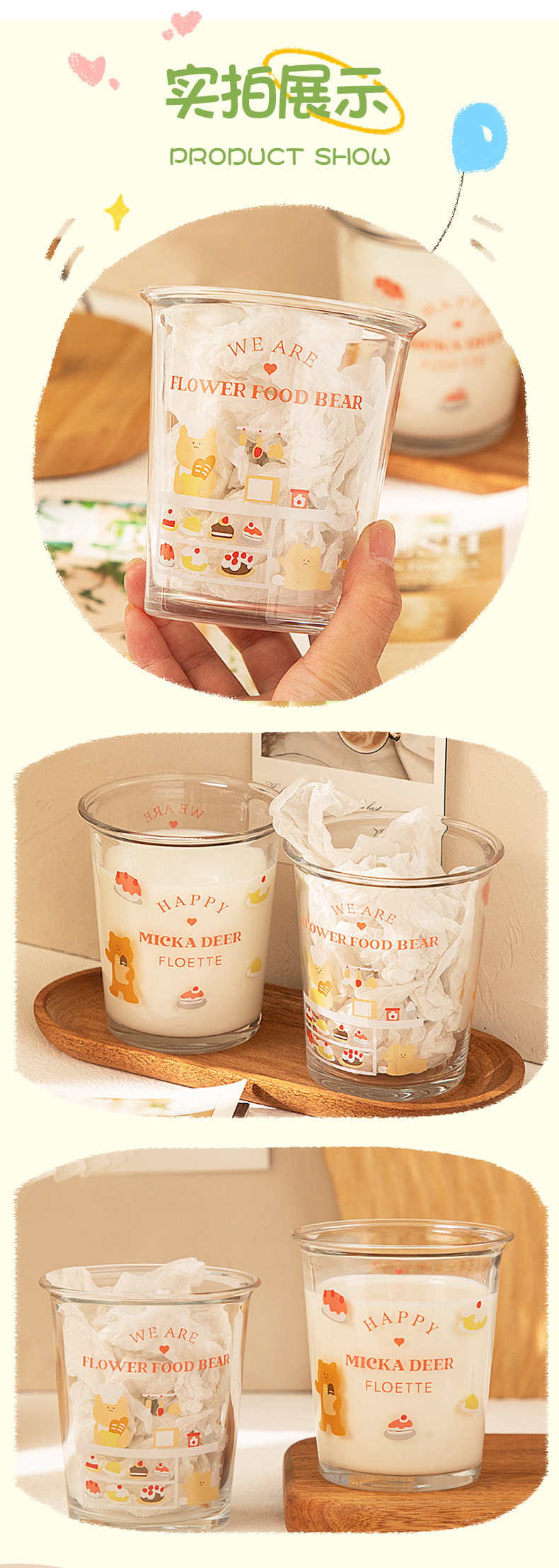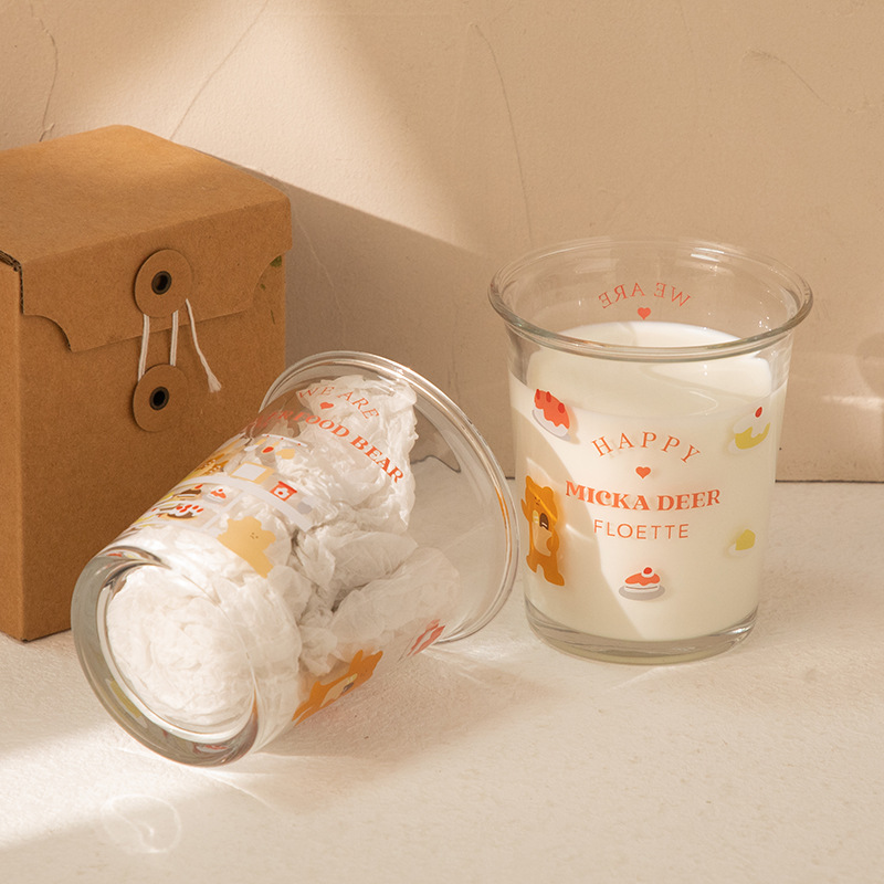 만화 곰돌이 예쁜 유리컵, 심플한 림이 넓은 컵, 인터넷 인기 ins 스타일, 여자들이 좋아하는 예쁜 물컵, 커피컵스토어 가기