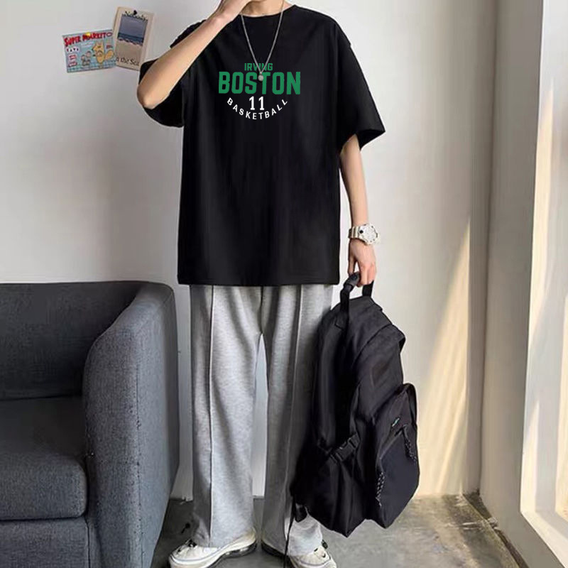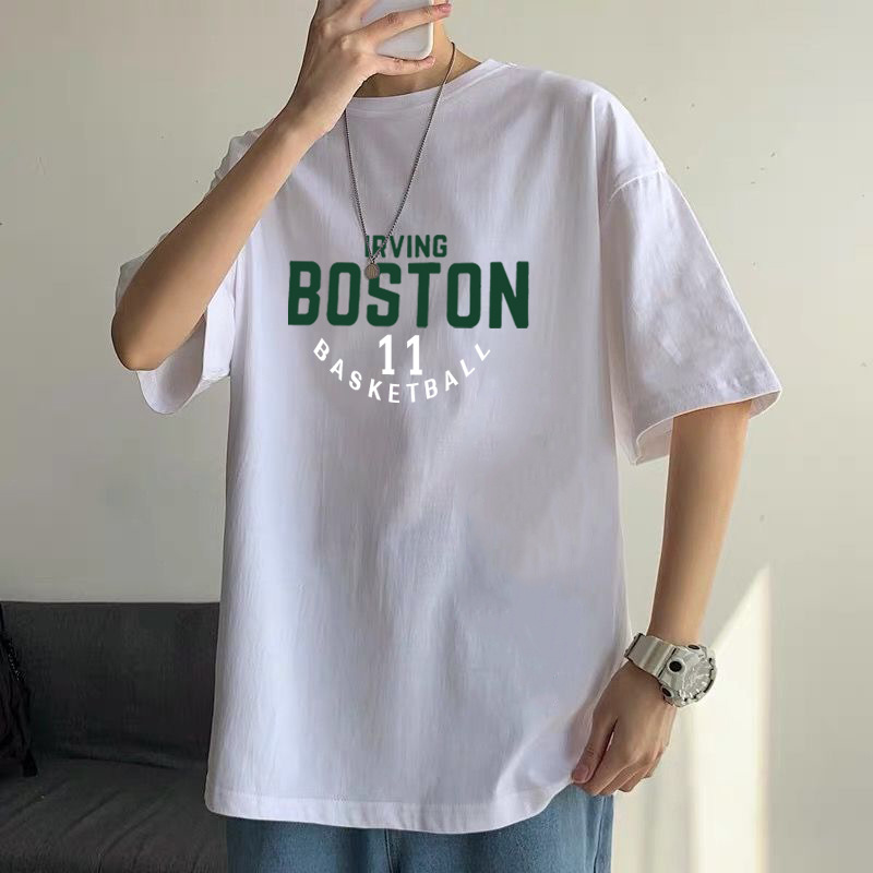 퓨어 코튼 반팔 티셔츠 남자 여름 홍콩 스타일 Ins 트렌디 브랜드 올 매치 느슨한 편지 인쇄 반팔 티셔츠 탑