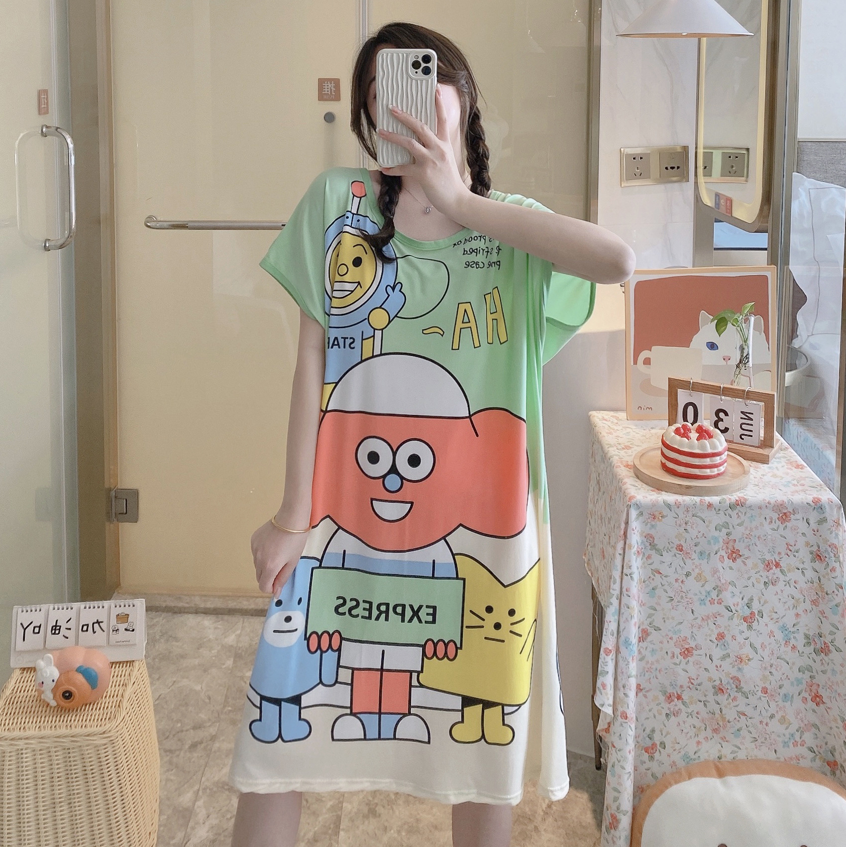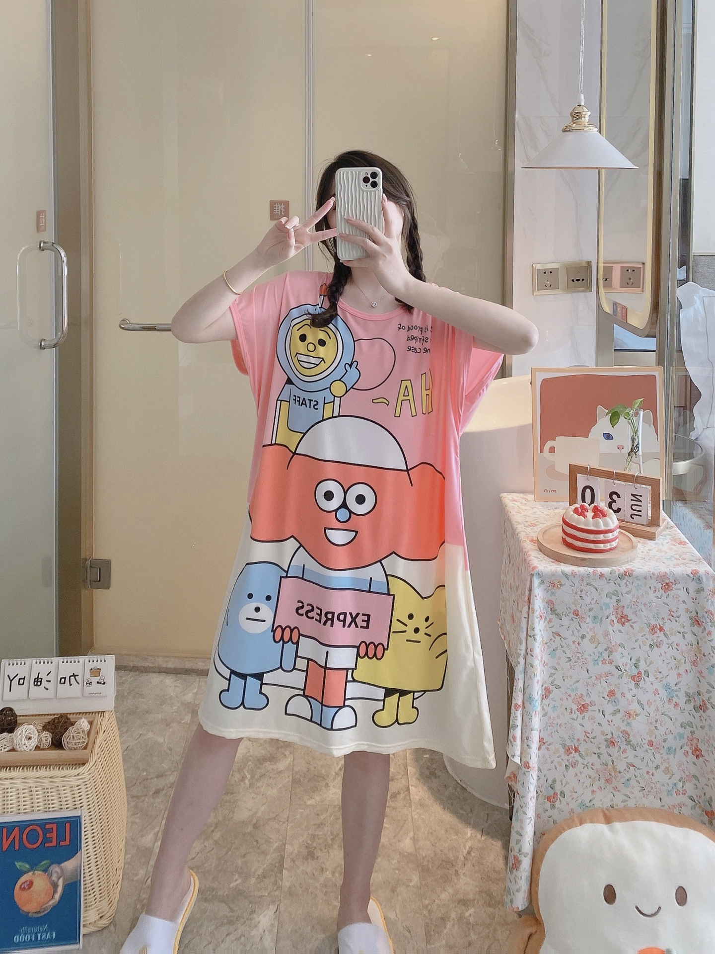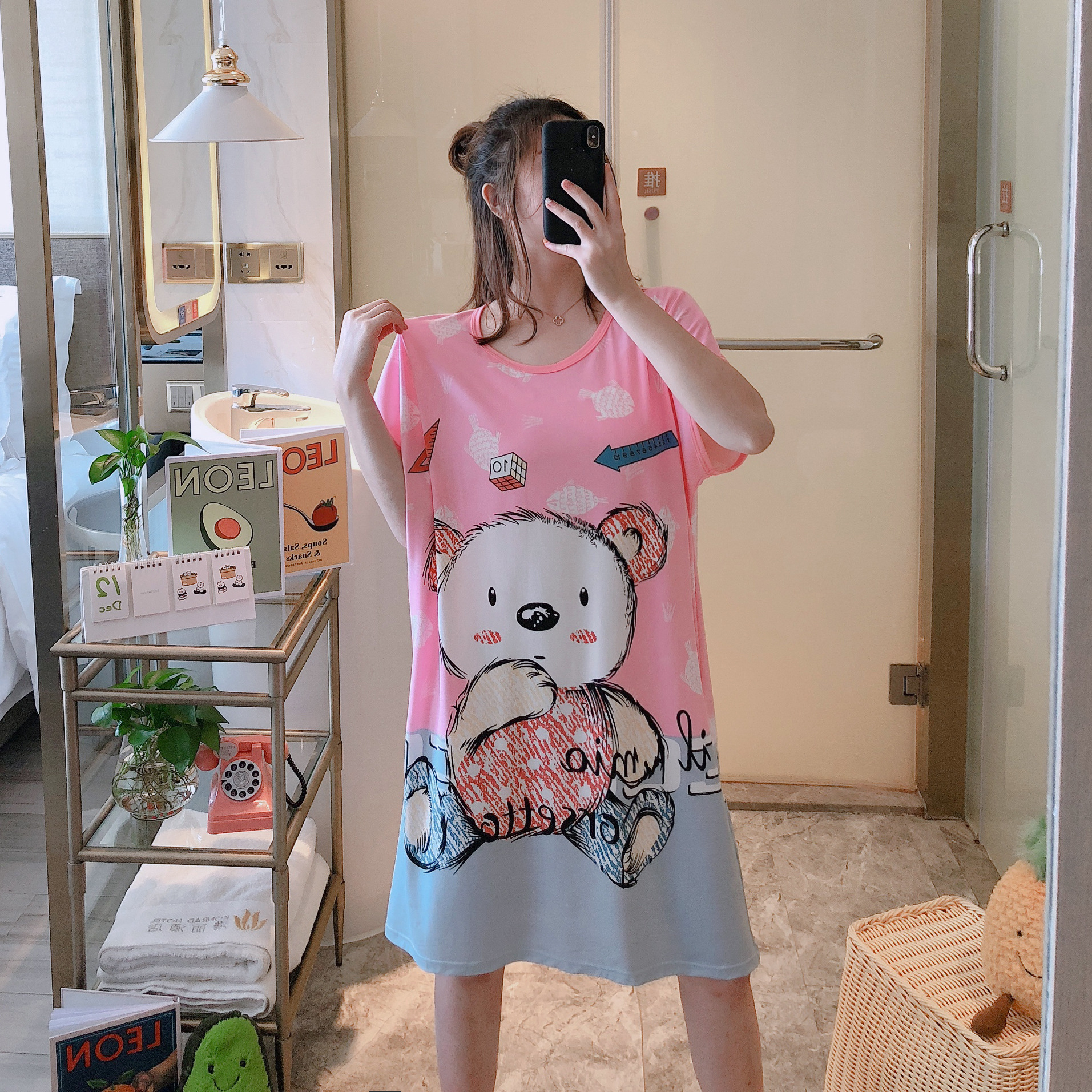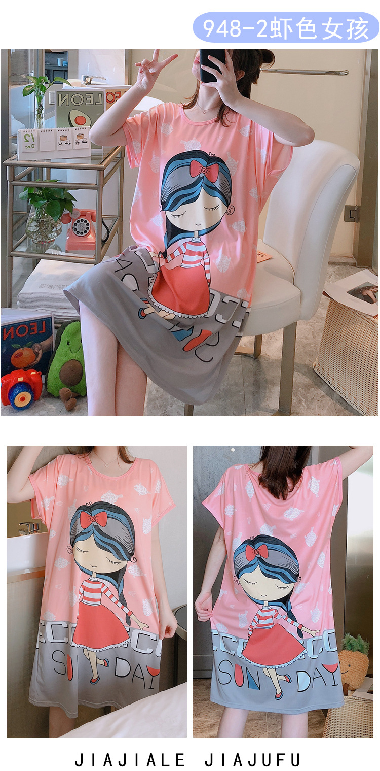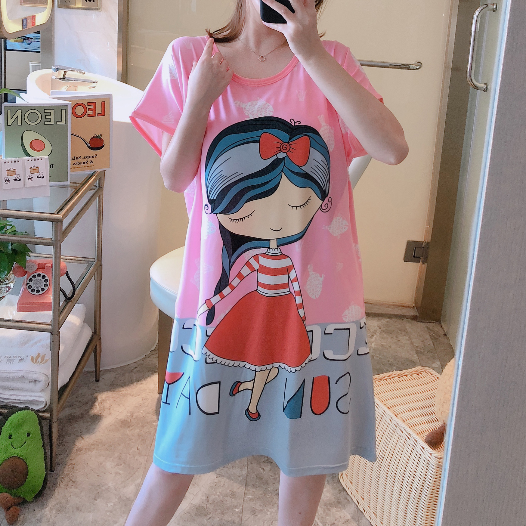 실제 비디오 동남아 싼 느슨한 증가 180 진 두꺼운 여름 짧은 소매 여성 잠옷 홈 착용 잠옷스토어 가기