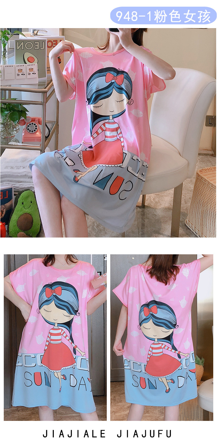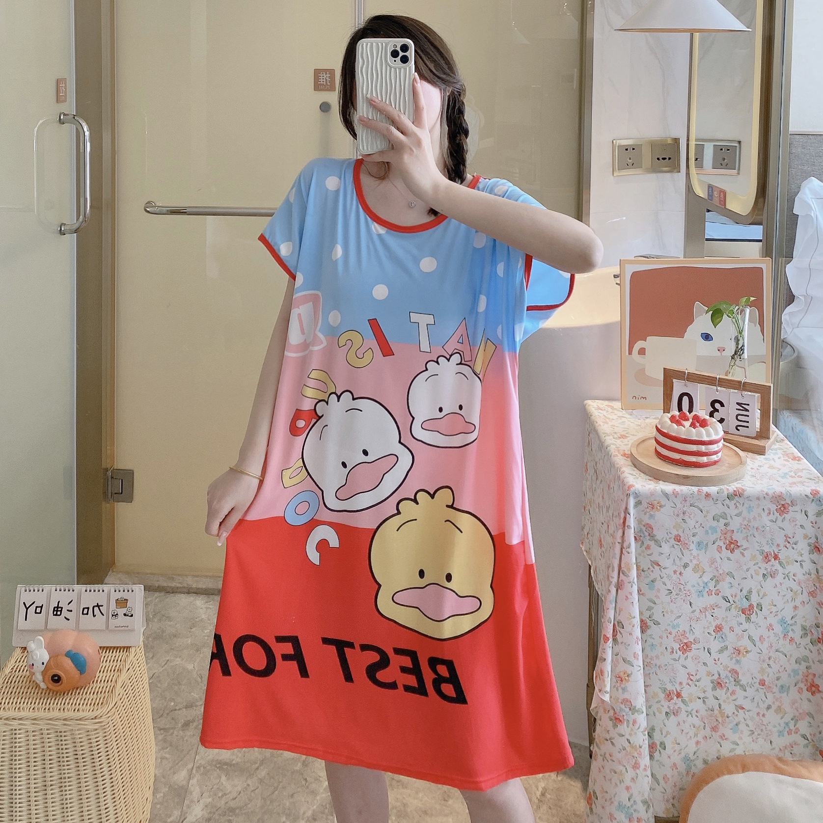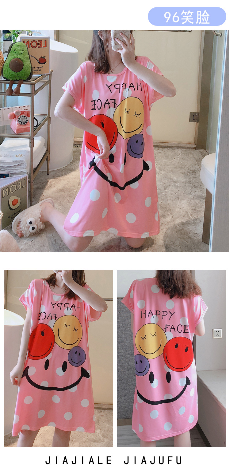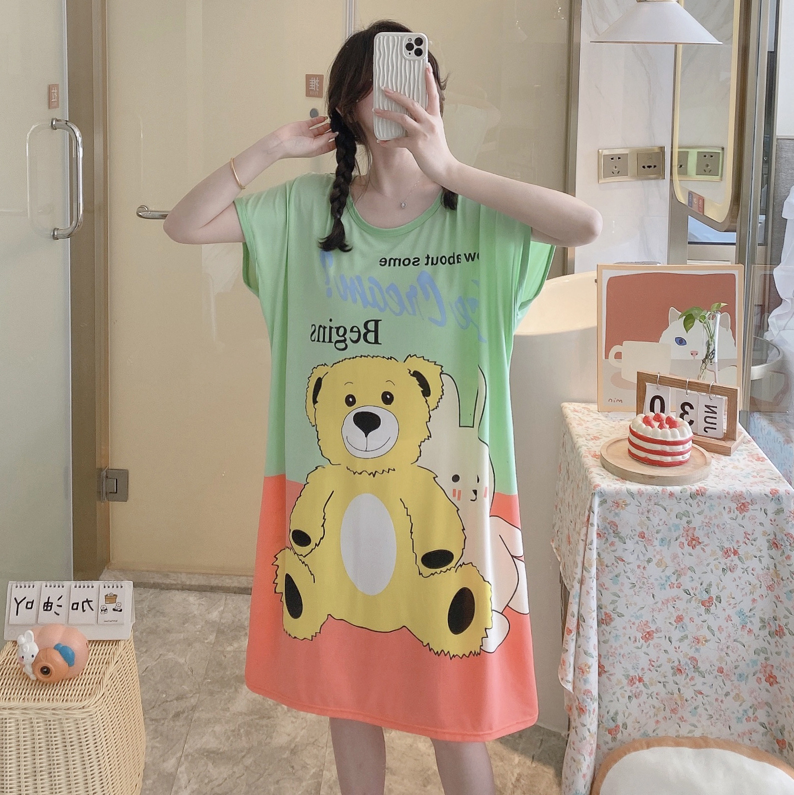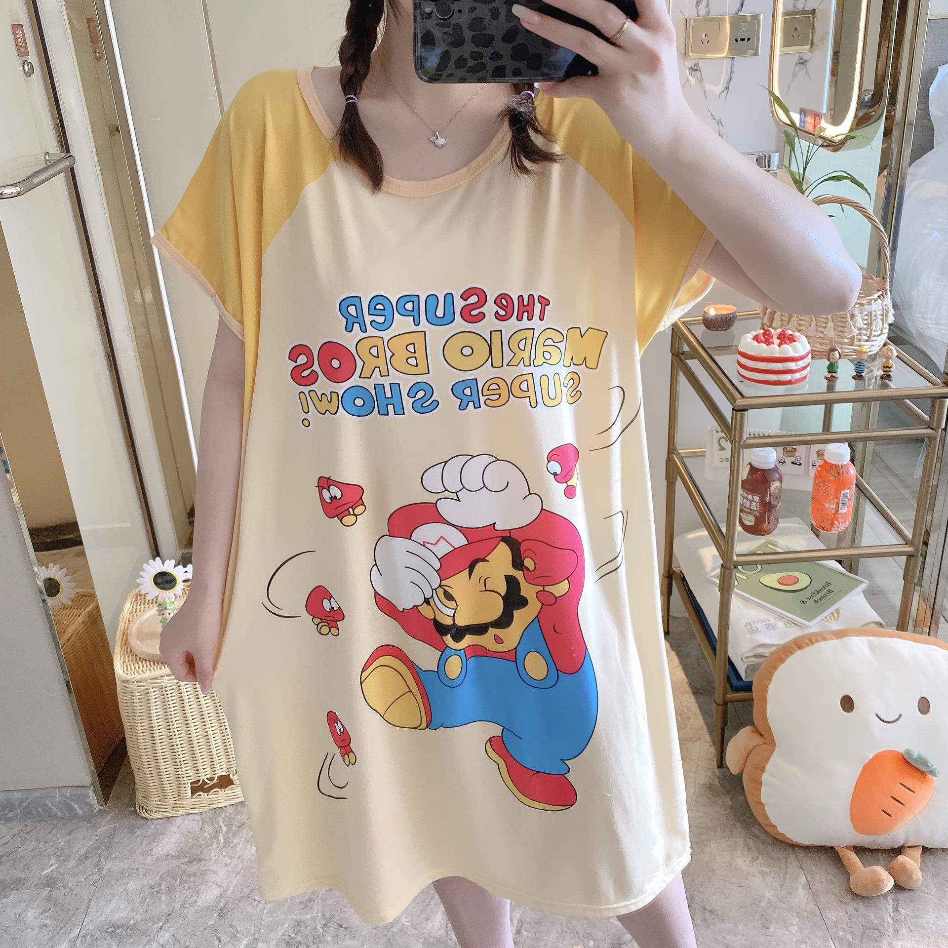 실제 비디오 동남아 싼 느슨한 증가 180 진 두꺼운 여름 짧은 소매 여성 잠옷 홈 착용 잠옷스토어 가기