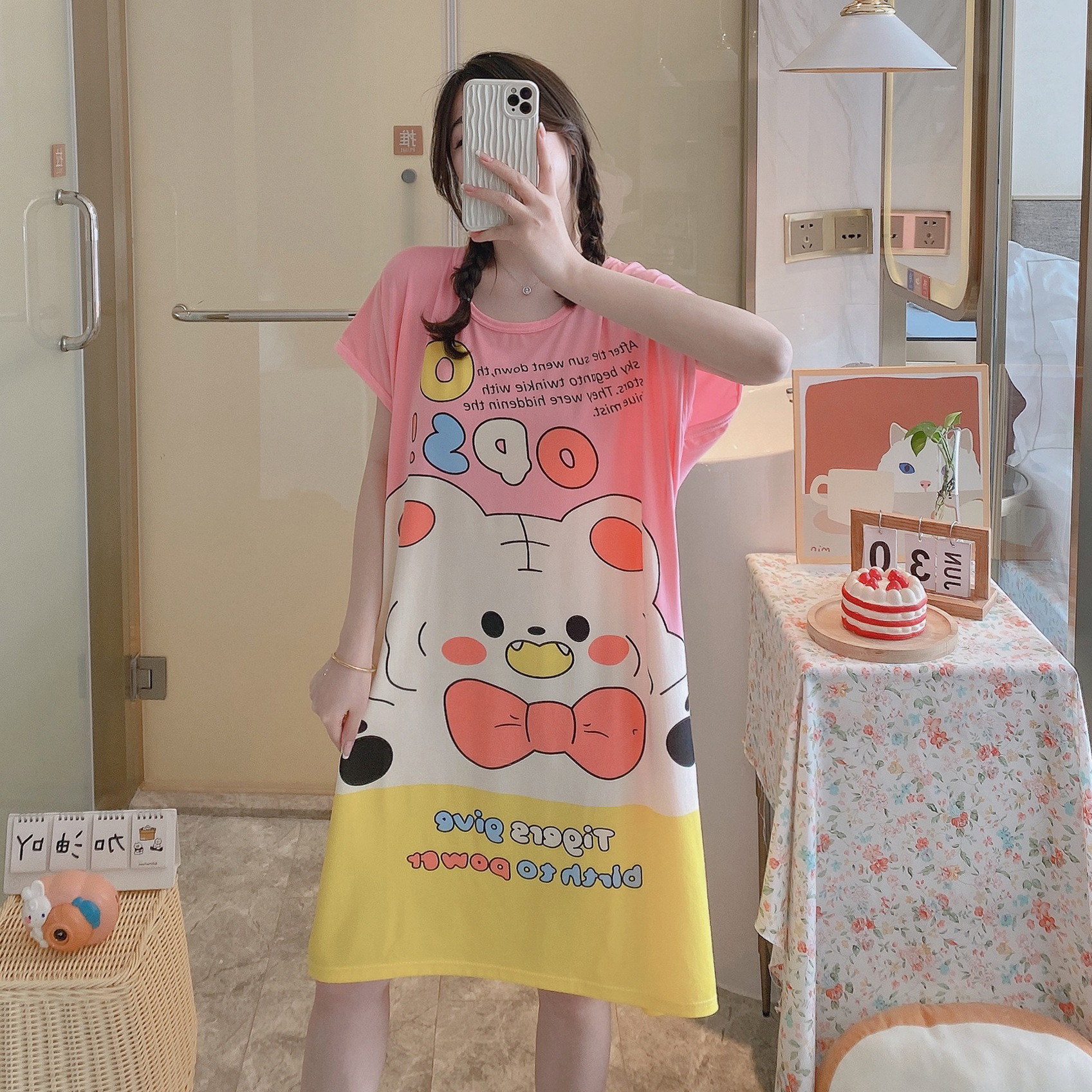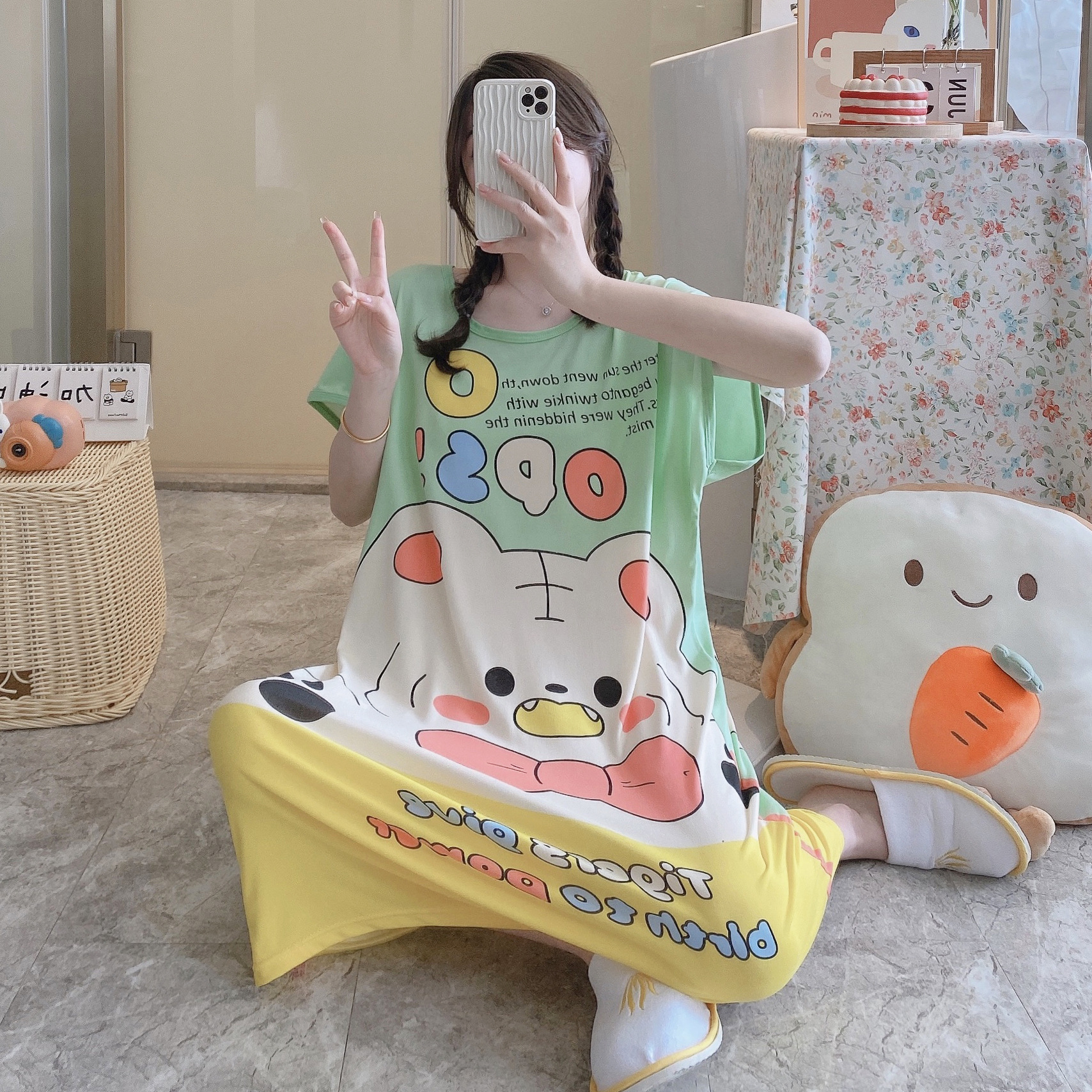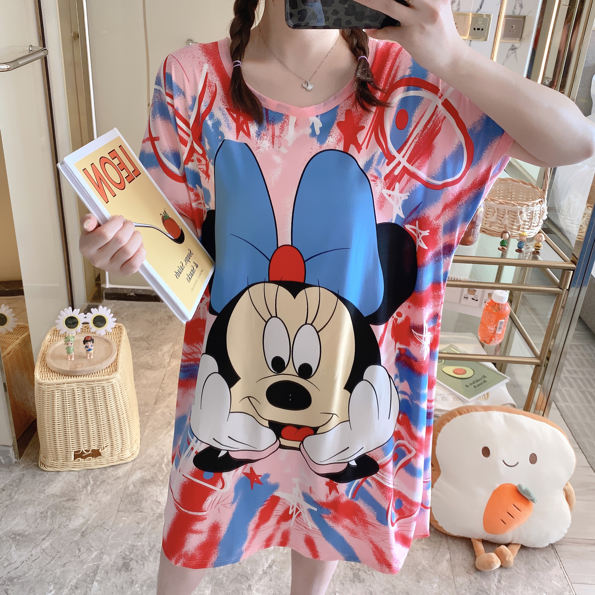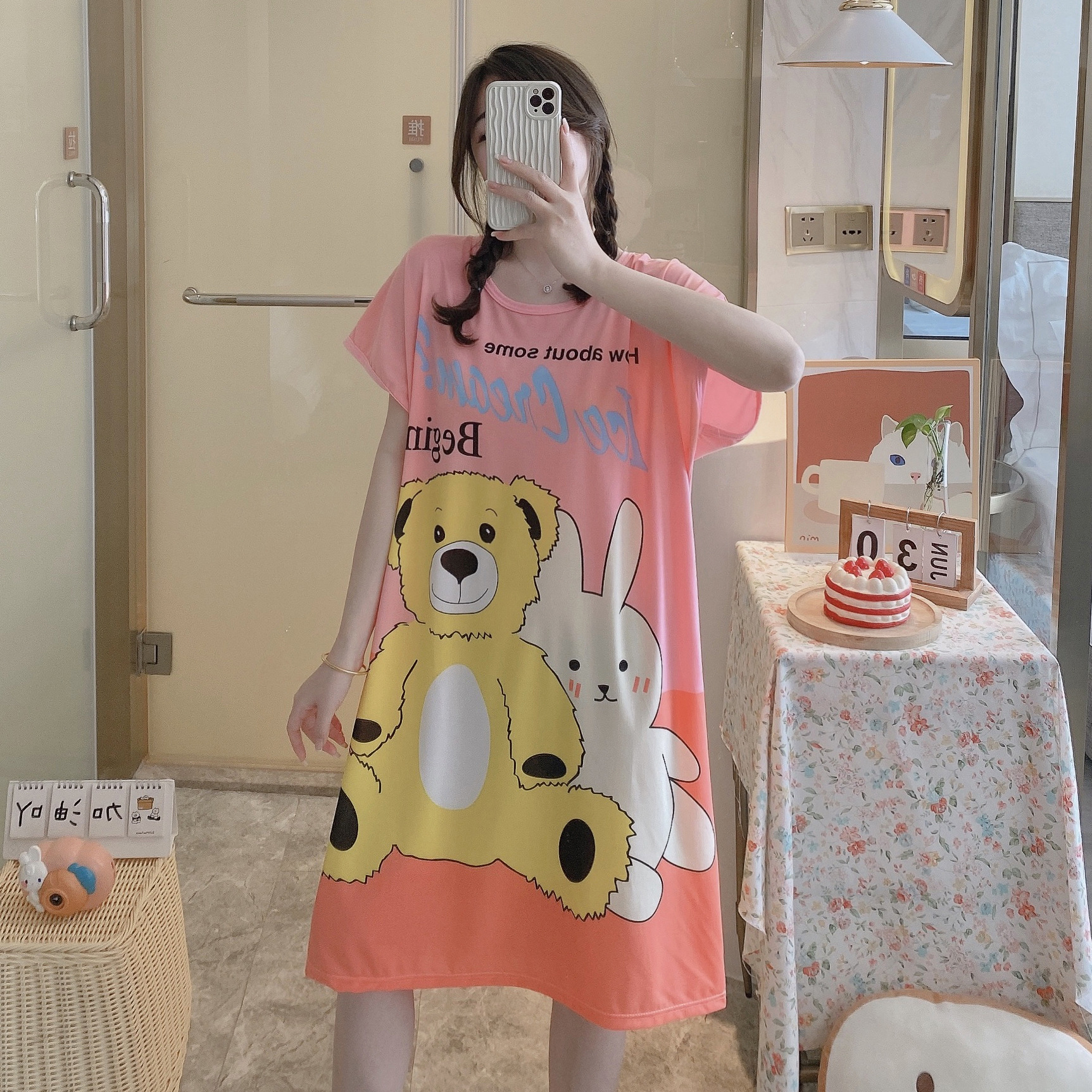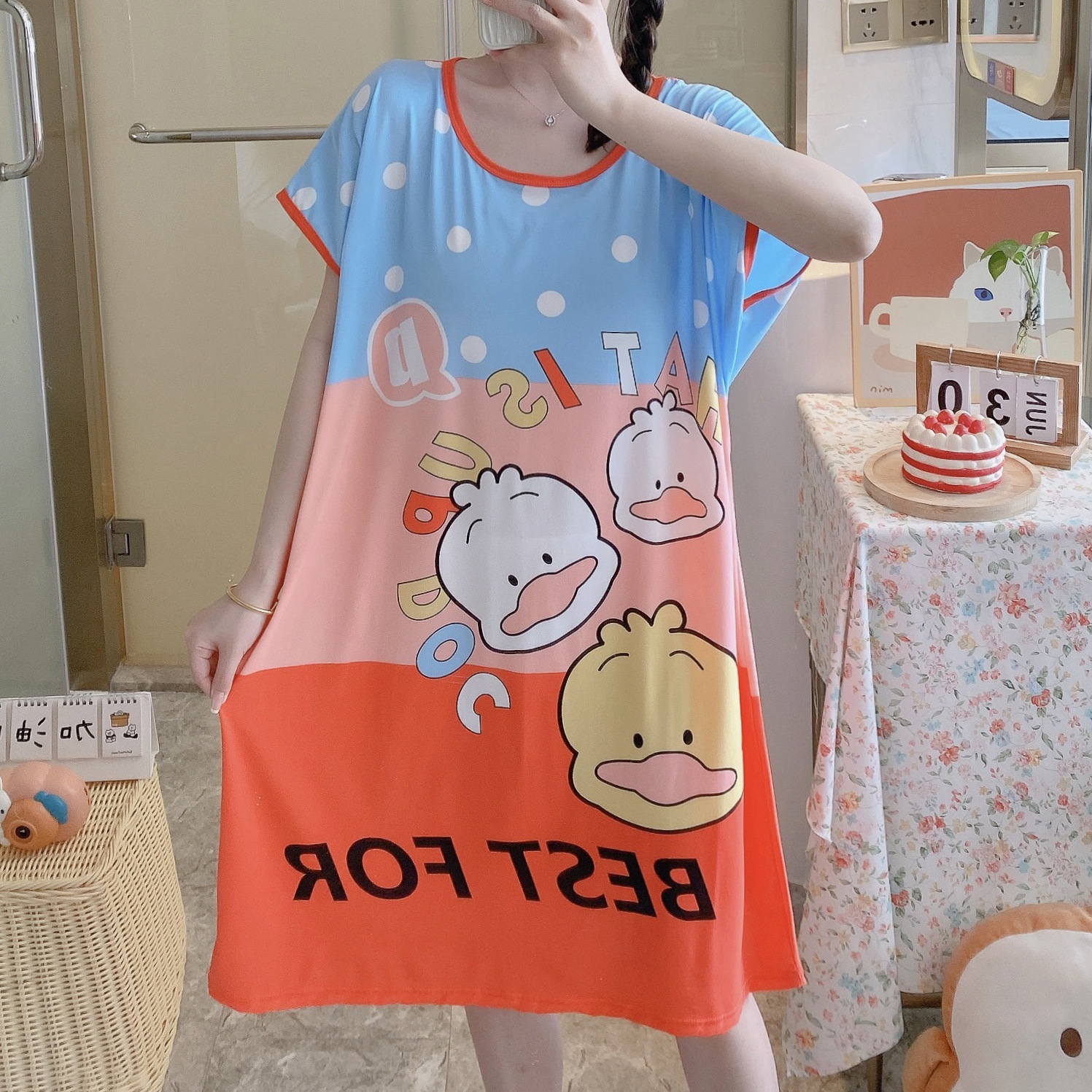 실제 비디오 동남아 싼 느슨한 증가 180 진 두꺼운 여름 짧은 소매 여성 잠옷 홈 착용 잠옷스토어 가기